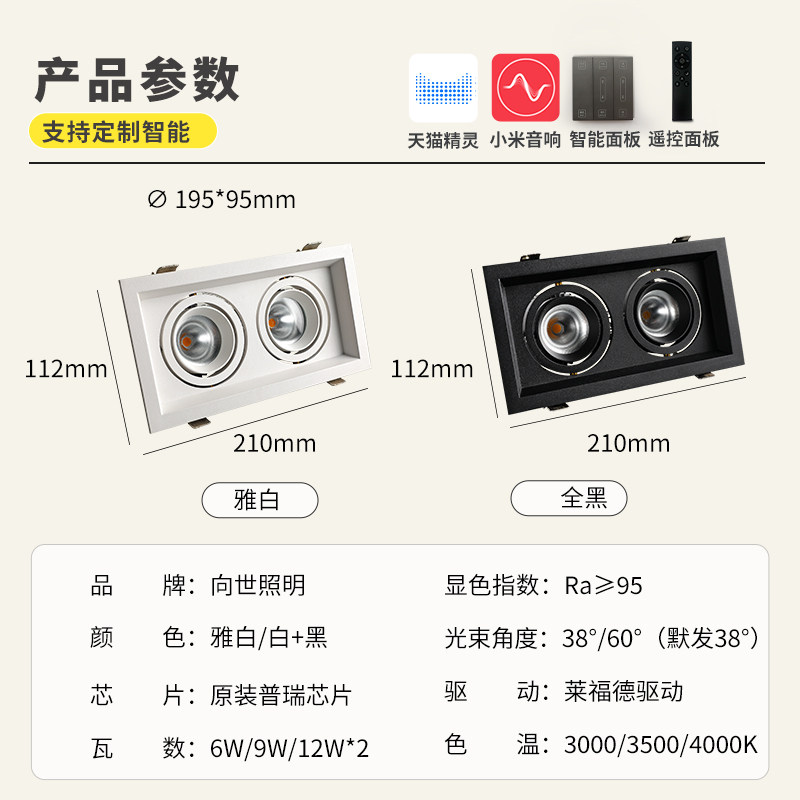 The double head LED embedded LED embedded lamp square living room anti - glare grille lamp high color rendering