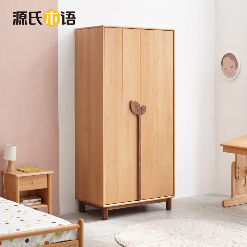 Yuan Wooden Children's Wardrobe Nordic Simple Small Household Cabinet Large Capacity All-Solid Wood Locker