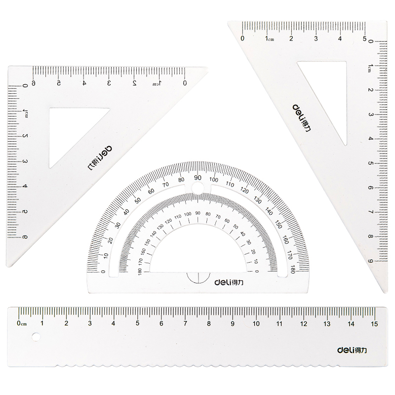 Powerful metal set ruler 79510 primary and secondary school students with exam drawing with ruler triangle ruler protractor ruler drawing four-piece PP boxed portable simple multi-function painting 4-piece stationery