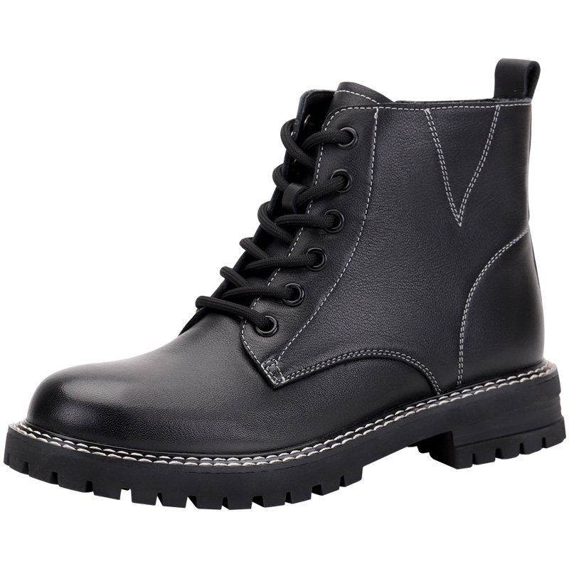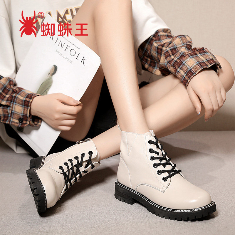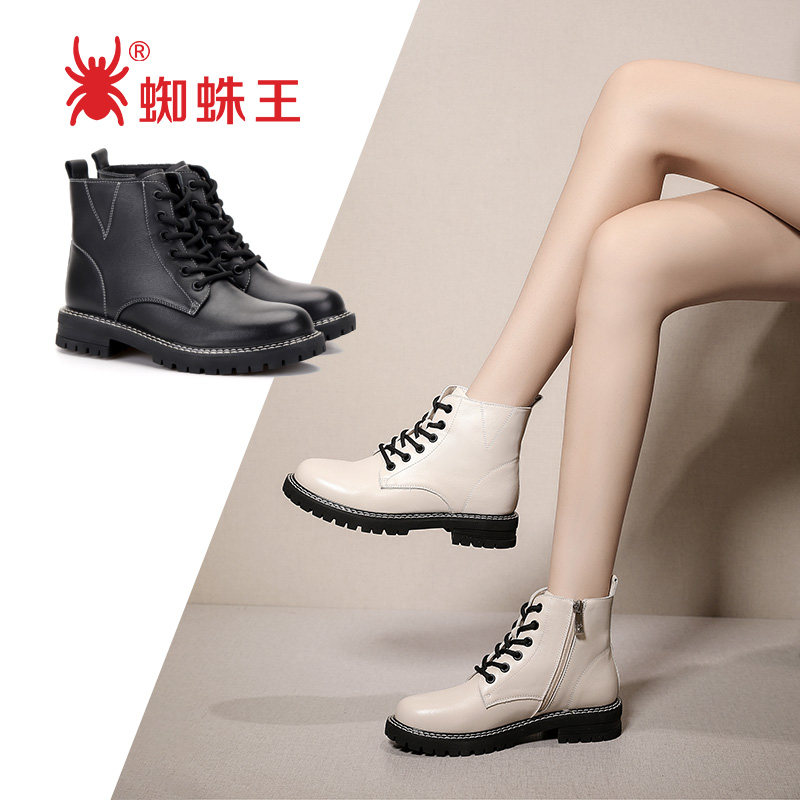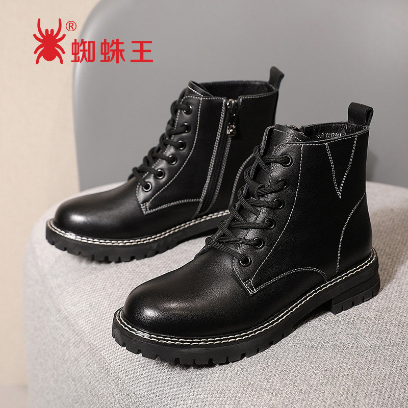 Spider King Cards Autumn Winter Black Full Leather Martin Boots Women Inglées Wind Single Boots 100 Hitch Flat Bottom Leather Short Boots