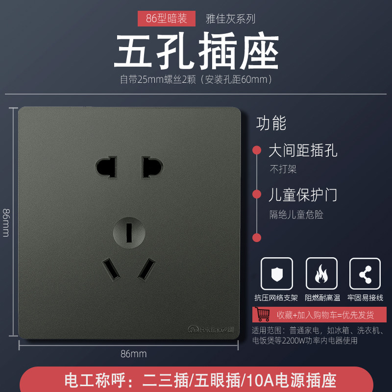 Flying Engraving Switch Socket Yasha Grey 86 Positive Five Holes Full Screen Concealed PC flame retardant material No border wall switch