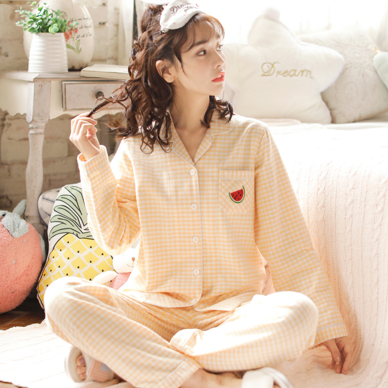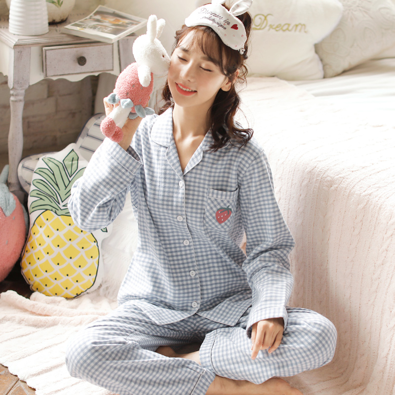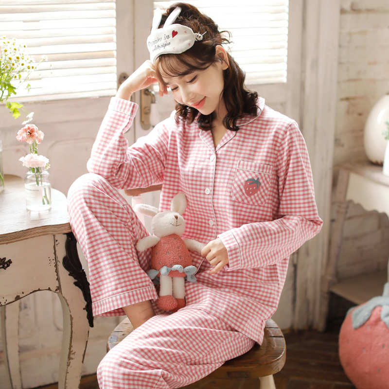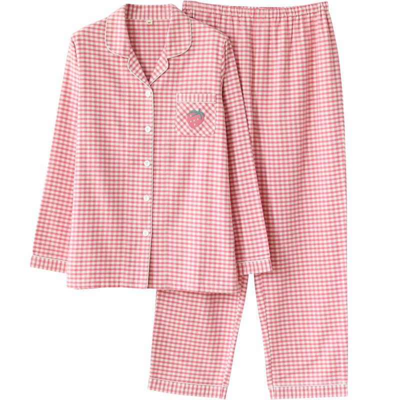 Cotton pajamas women's spring and autumn plaid sanding flannel long sleeve woven cotton linen women's autumn and winter household clothing long sleeve suit