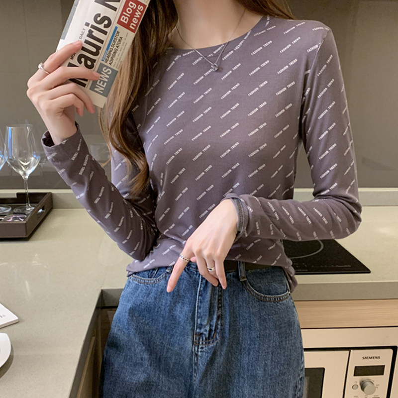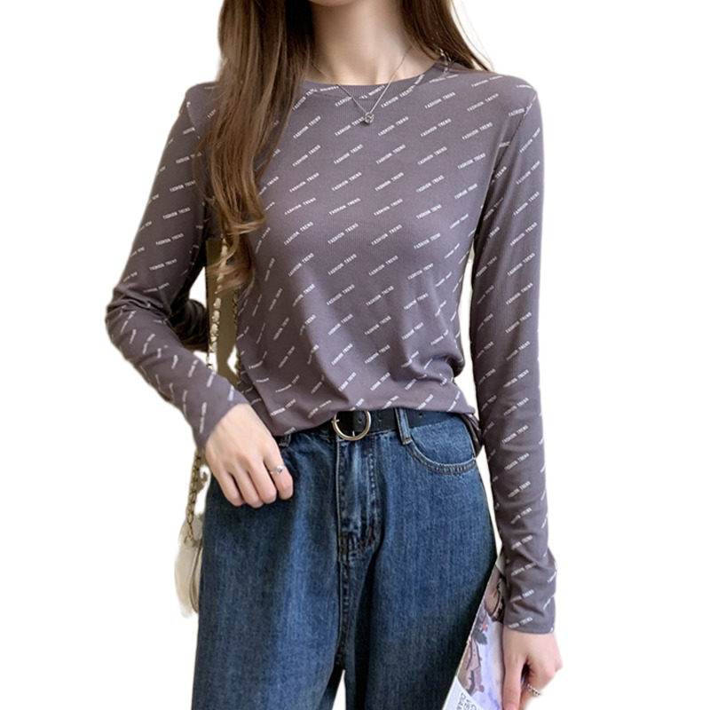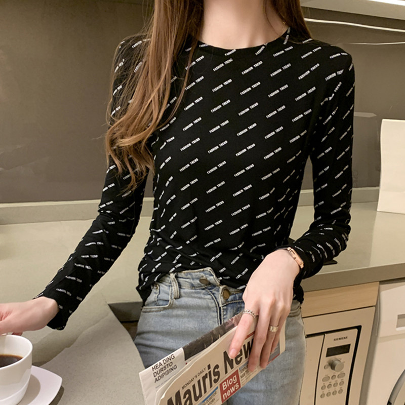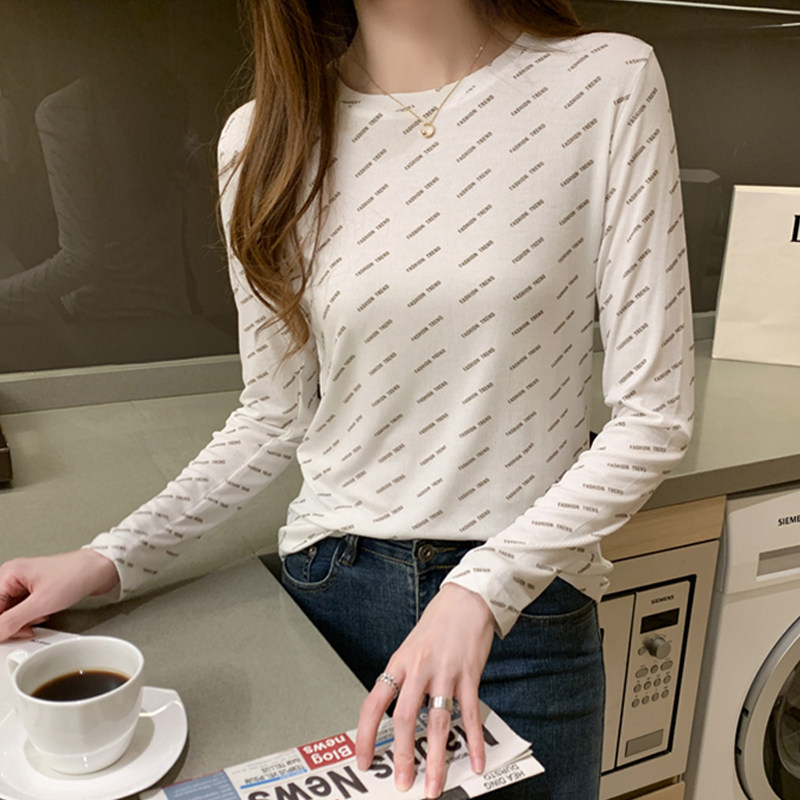 Fanya white long-sleeved T-shirt women's spring and autumn Korean casual fashion self-cultivation letter round neck bottoming shirt top