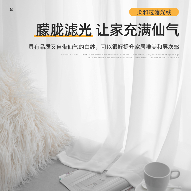 Floating Window Yarn Curtain Free To Install Balcony Window Screen Veil White Light Transmission Opaque Man Window Curtain Rod Curtain Complete Set