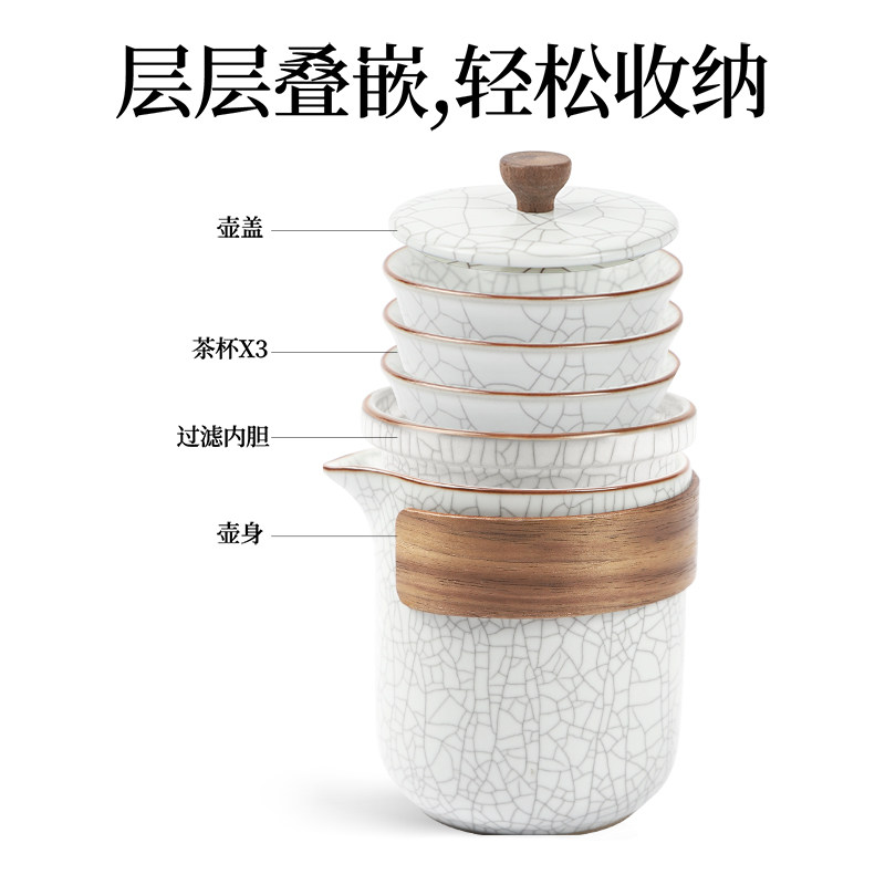"Crushed White" Travel Tea Set Kung Fu Small Tea Cup Suit A Pot Three Cups Outdoor Portable Bag Ceramic Quick Guest Cup