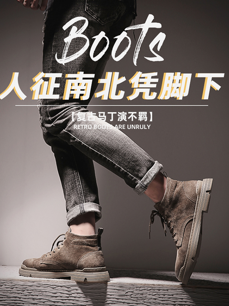Martin boots men's high-top British style tooling boots autumn men's shoes ins mid-top men's boots winter boots men's trendy shoes
