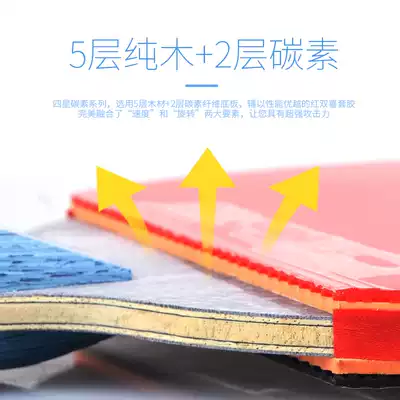 Red double happiness table tennis racket four-star 4 carbon 4002C 4006C Professional level table tennis single shot Student horizontal