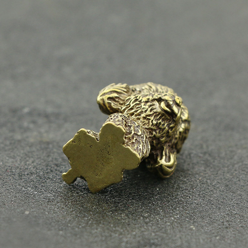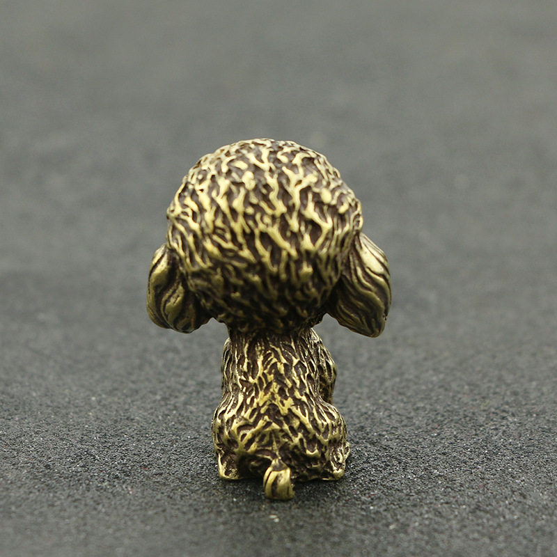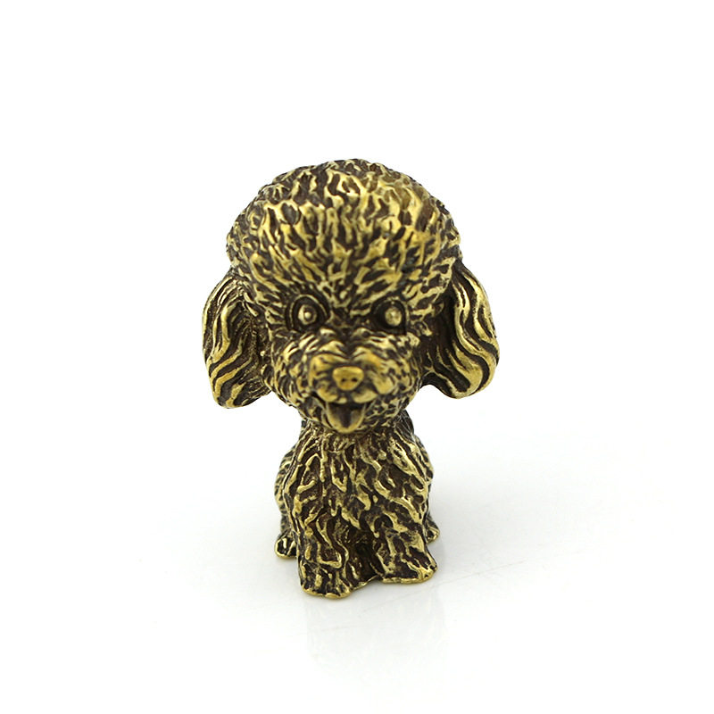 Antique made old copper micro-carved animal poodle small ornaments solid brass baby dog copper handle antique bronze ware
