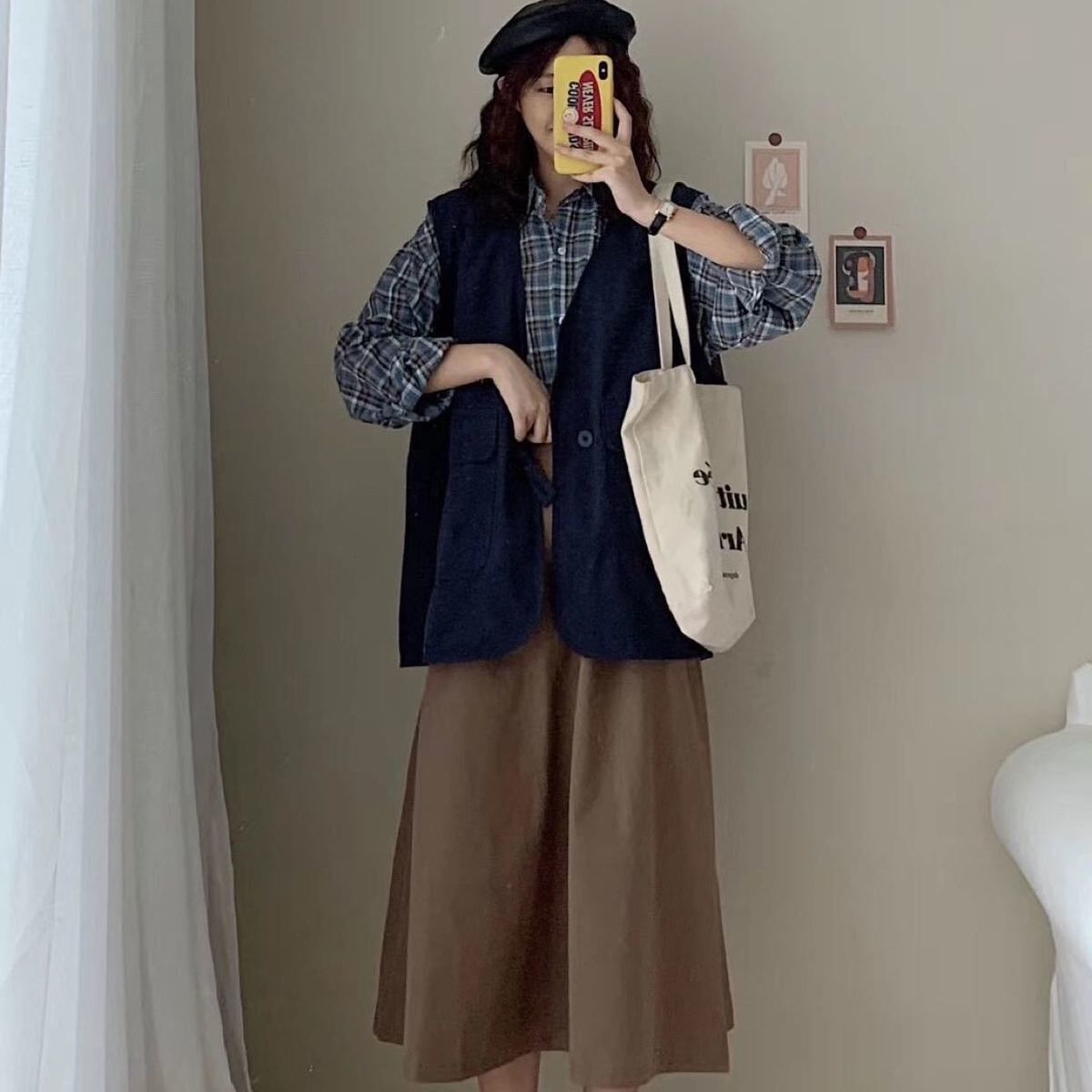 Single Suit 2022 Spring Autumn Season New Loose Schoolgirl Shirt Tooling Horse Chia Half Body Dress Three Sets