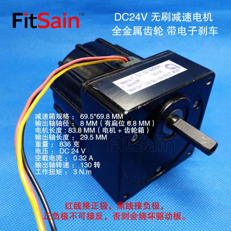 FitSain-DC24V with drive brushless gear motor all metal gear belt electronic braking high torque