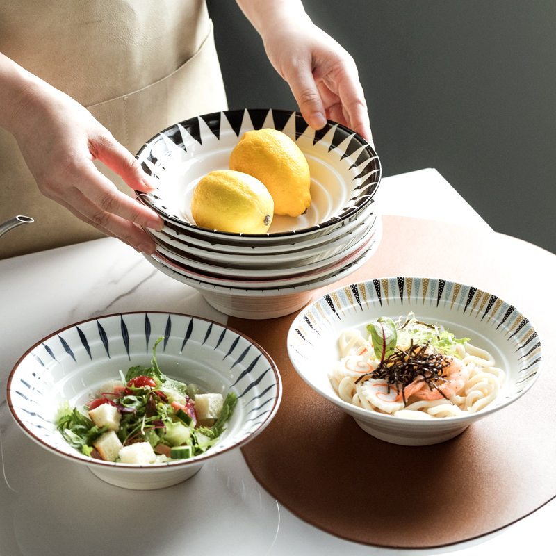 Triangle edge 8 inch horn bowl (dishwasher microwave oven big black triangle 8 inch horn bowl (can hold small black triangle 8 inch horn bowl star angle line edge 8 inch horn bowl blue leaf 8 inch horn bowl rhombus