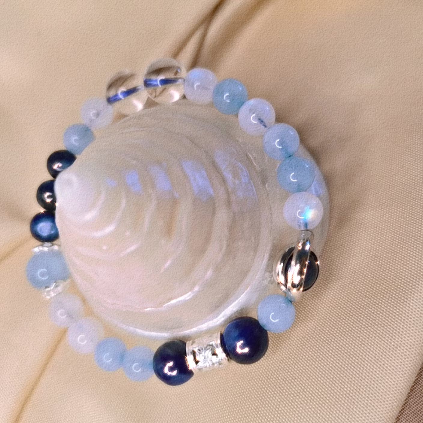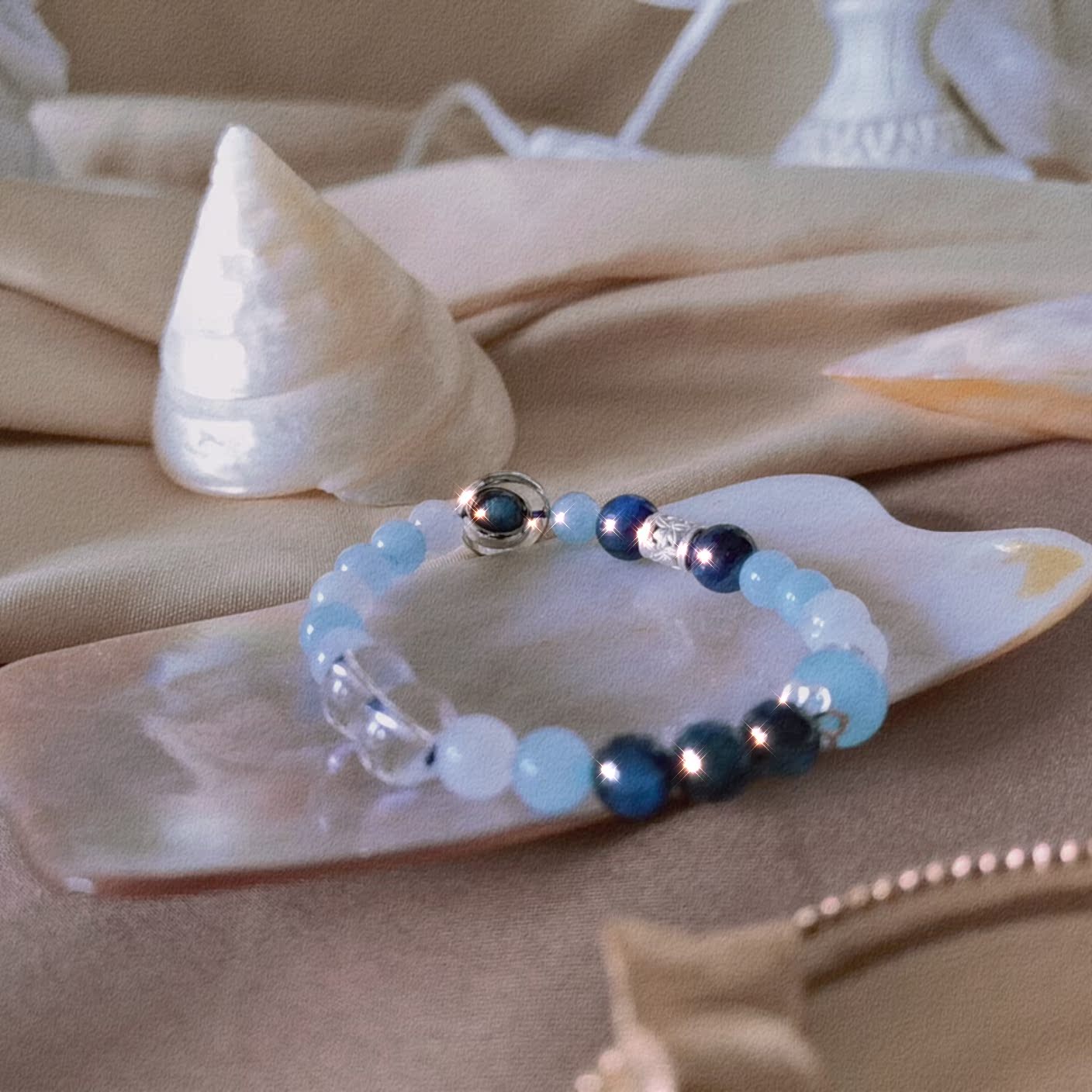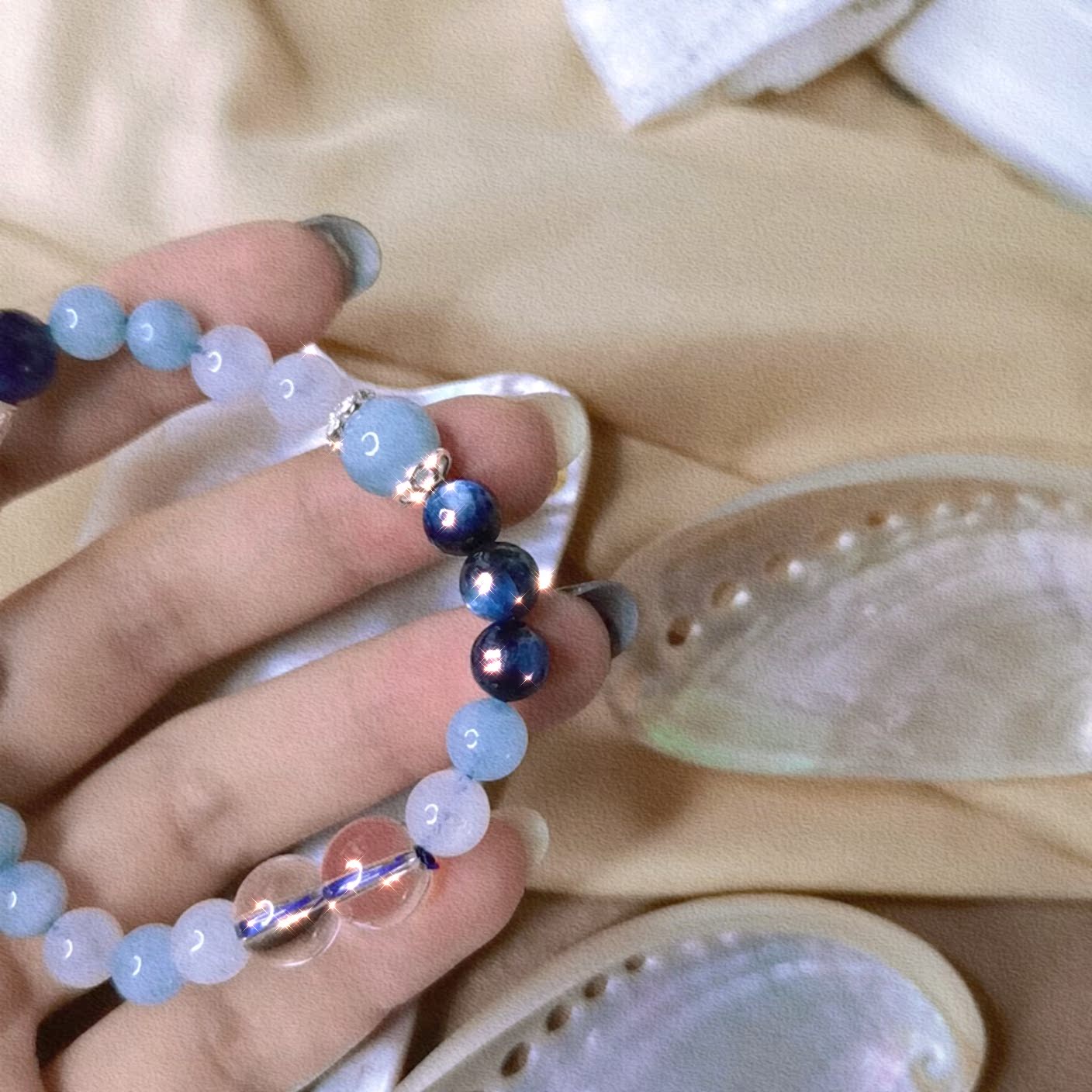 "Fantasy love sky" original niche design natural Kyanite blue moonlight white crystal Aquamarine personality bracelet