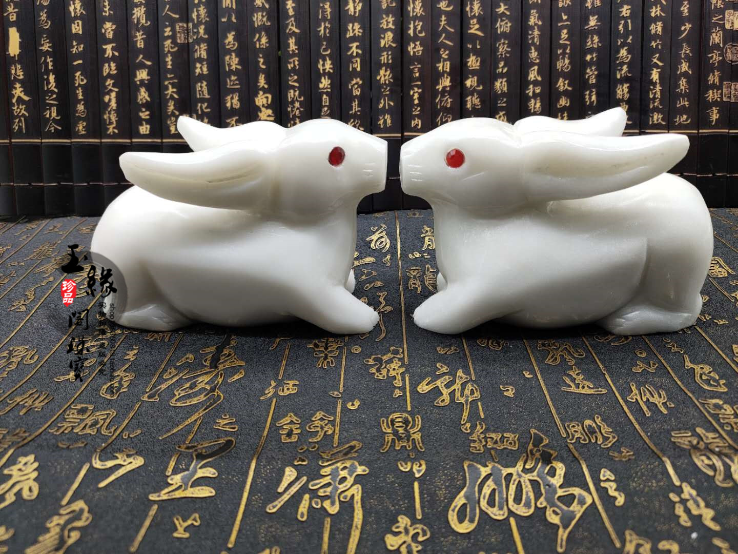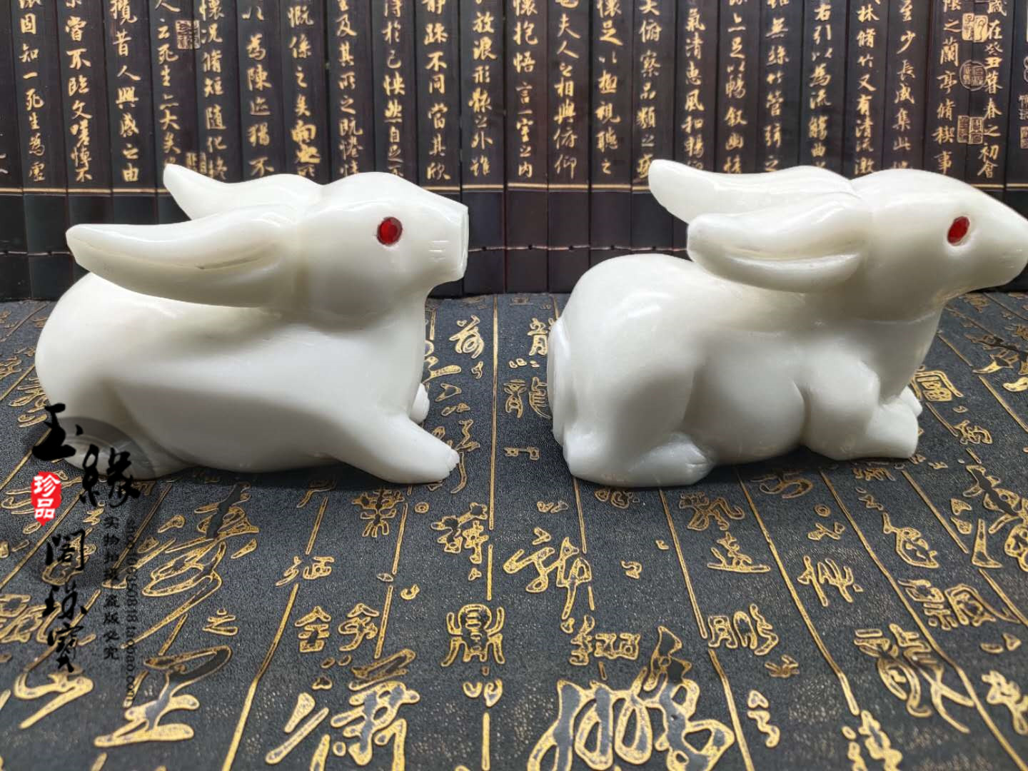 Natural Afghanistan Jade Small White Rabbit Desk Home Decoration Pint White Jade Rabbit Pendulum Shop Opening Gift