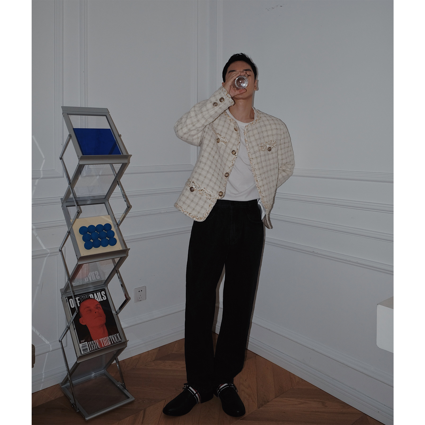 24KHOMME AW20 Private Custom Black Label Plaid Tweed Small Fragrant Jacket Coat for Men and Women