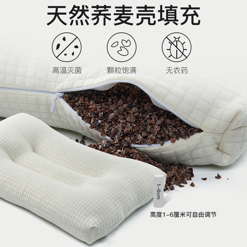 Buckwheat Pillow Pillow Core Single Cervical Spine Pillow Sleep Children Student Dorm Room Assisted Sleeping Special Home Shell Leather Low Pillows