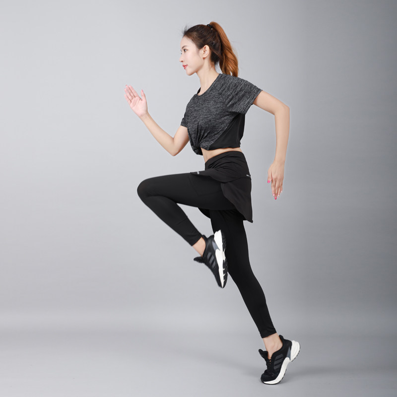 Spring Autumn Sports Pants Dress Lady Speed Dry Fitness Running Yoga Jumper High Waist Fake two Even body tight 90% pants