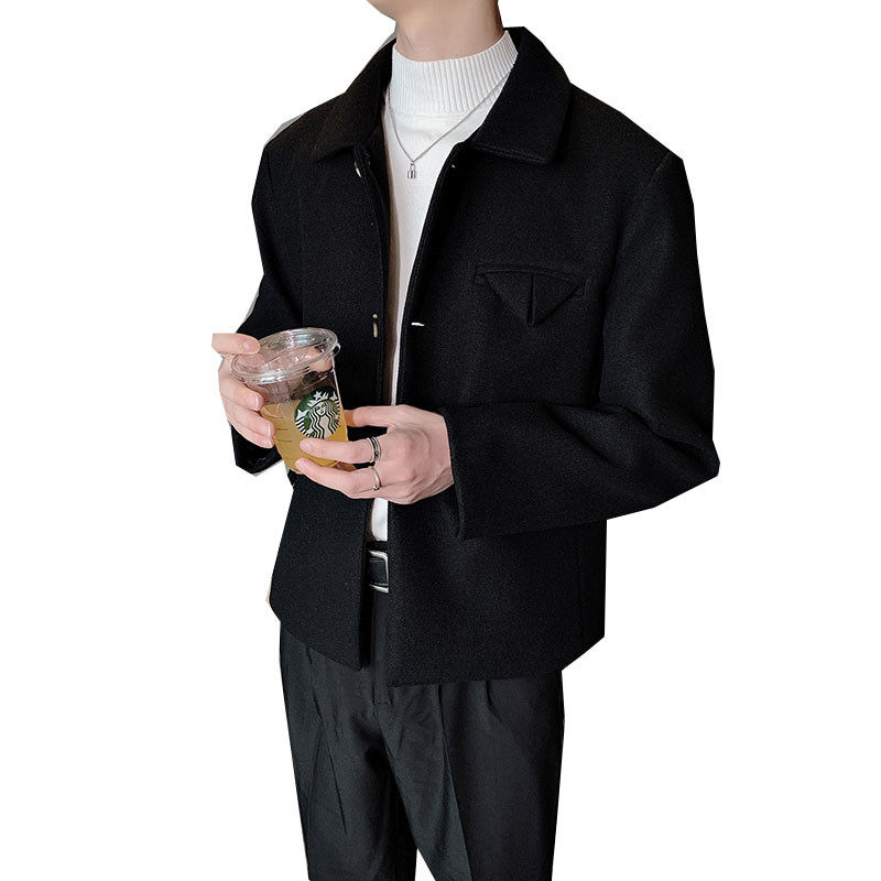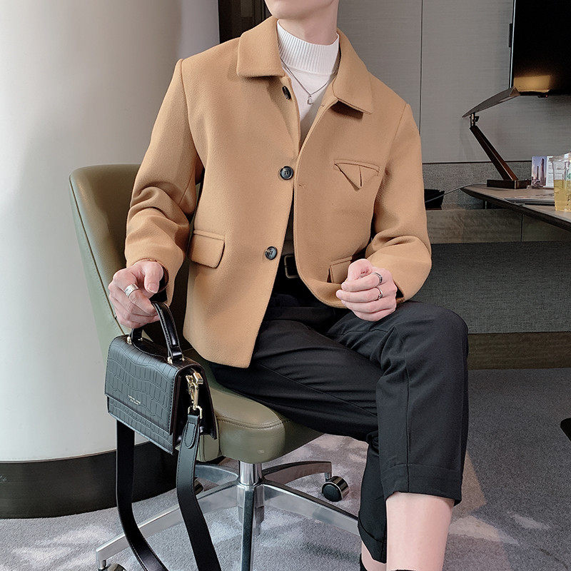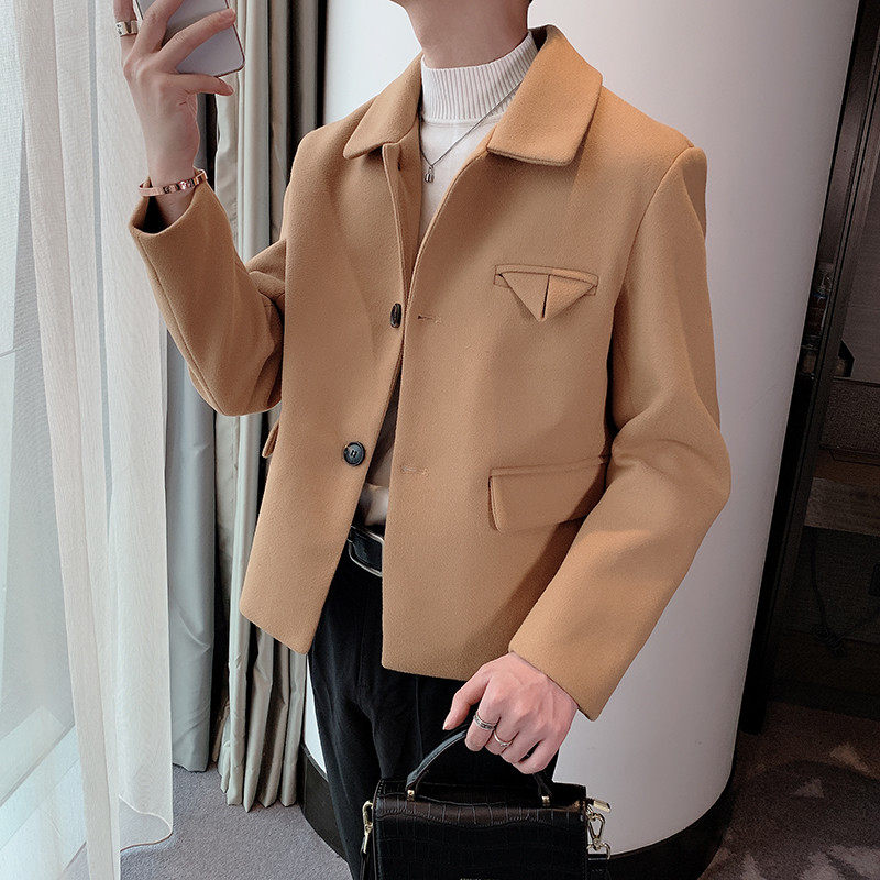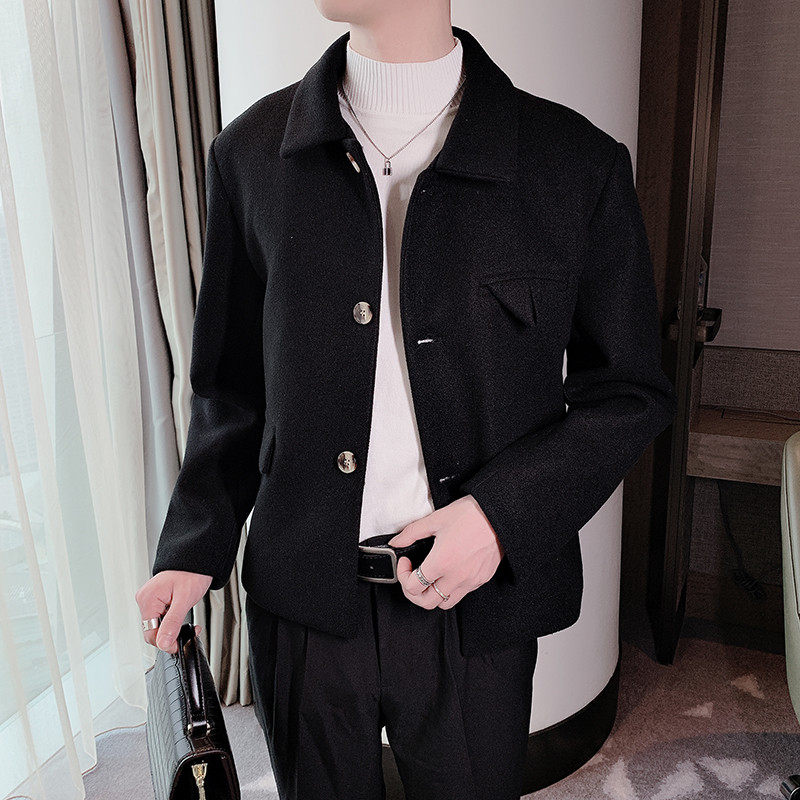 Autumn and winter coat male hair stylist woolen jacket male slimming lapel yuppie handsome jacket Korean version slimming woolen trend