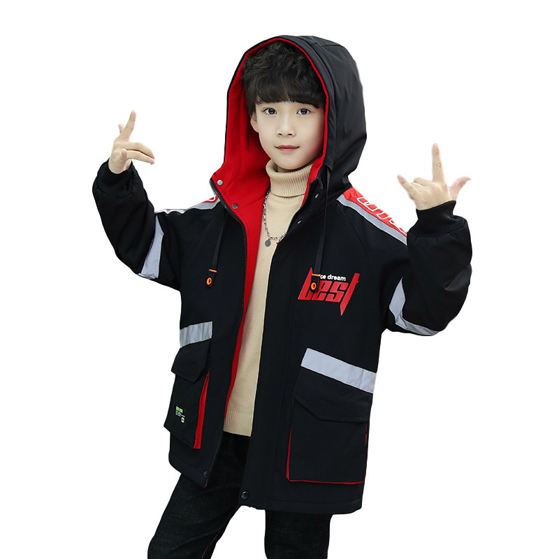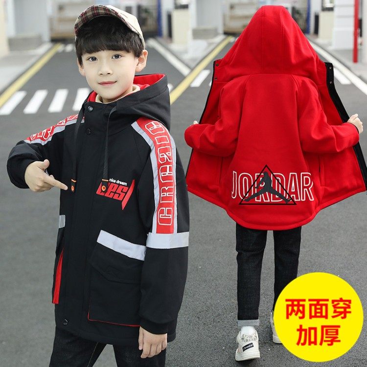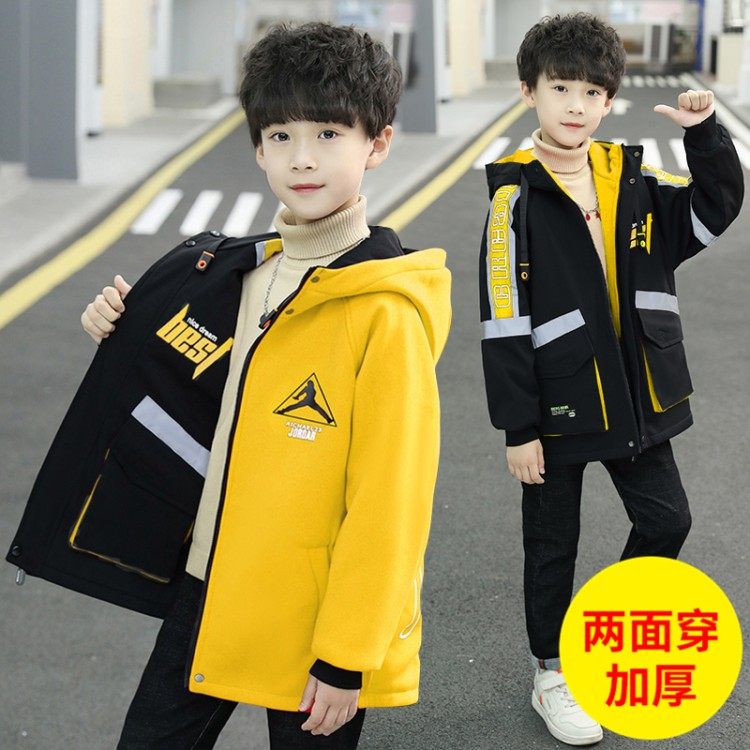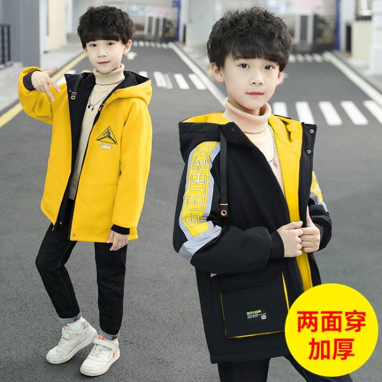 Boys' autumn and winter wear double-sided coat thickened autumn and winter children's mid-length windbreaker double-sided wear middle and large children's tops