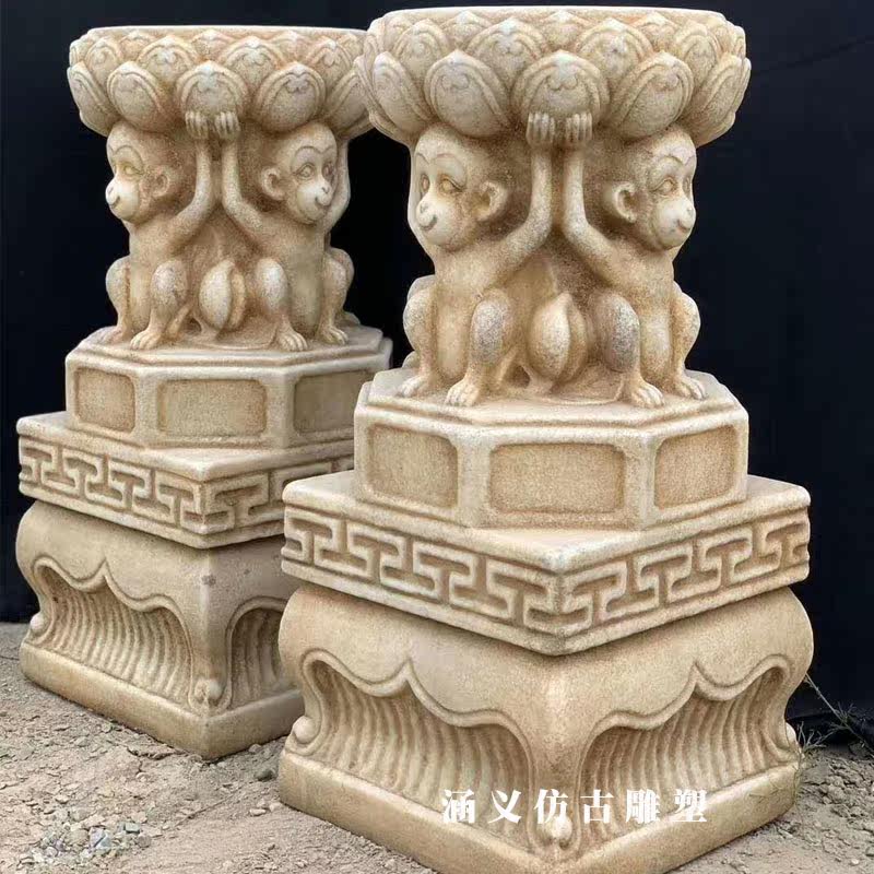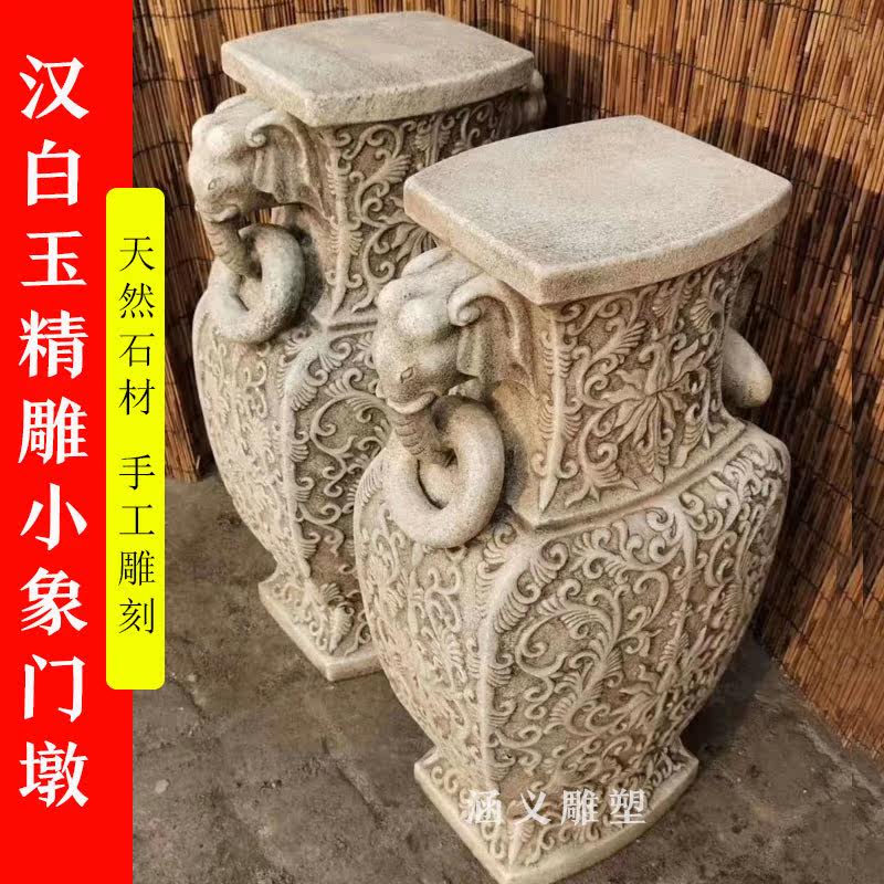 Stone carving requires a Han white jade imitation ancient bonsai base flower shelf courtyard home stone mound lotus base stone column pier