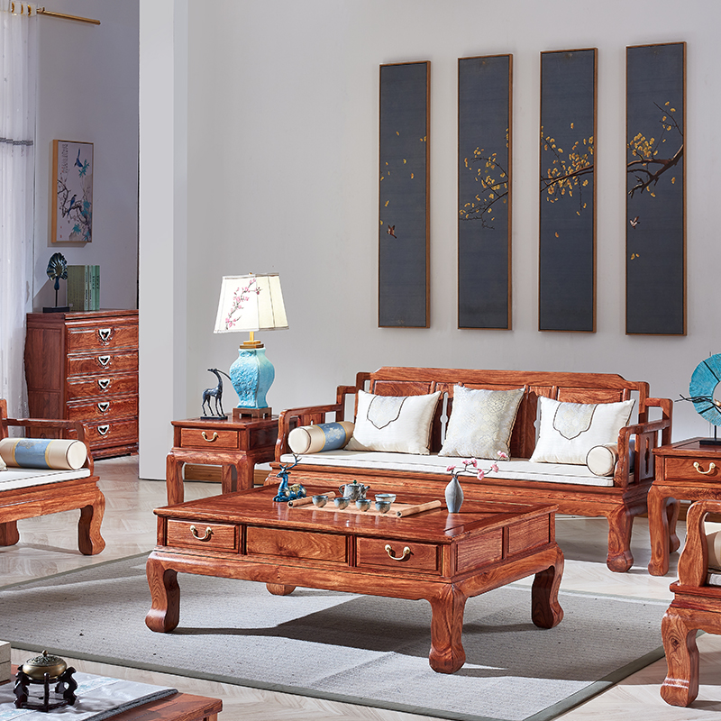 Redwood furniture hedgehoard new Chinese sofa living room combined solid wood soft soft small household type simple modern