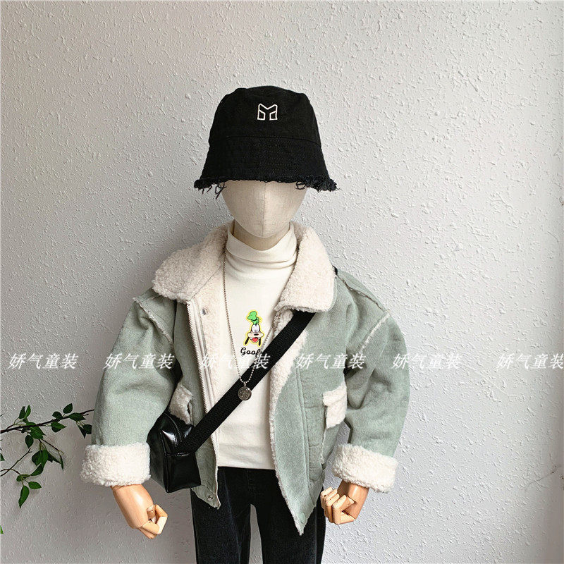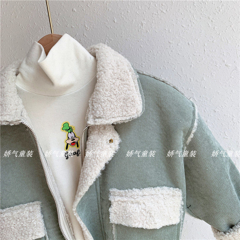 Chen Mom Children's coat 2020 autumn and winter new lamb cordulle splice baby wearing a topper