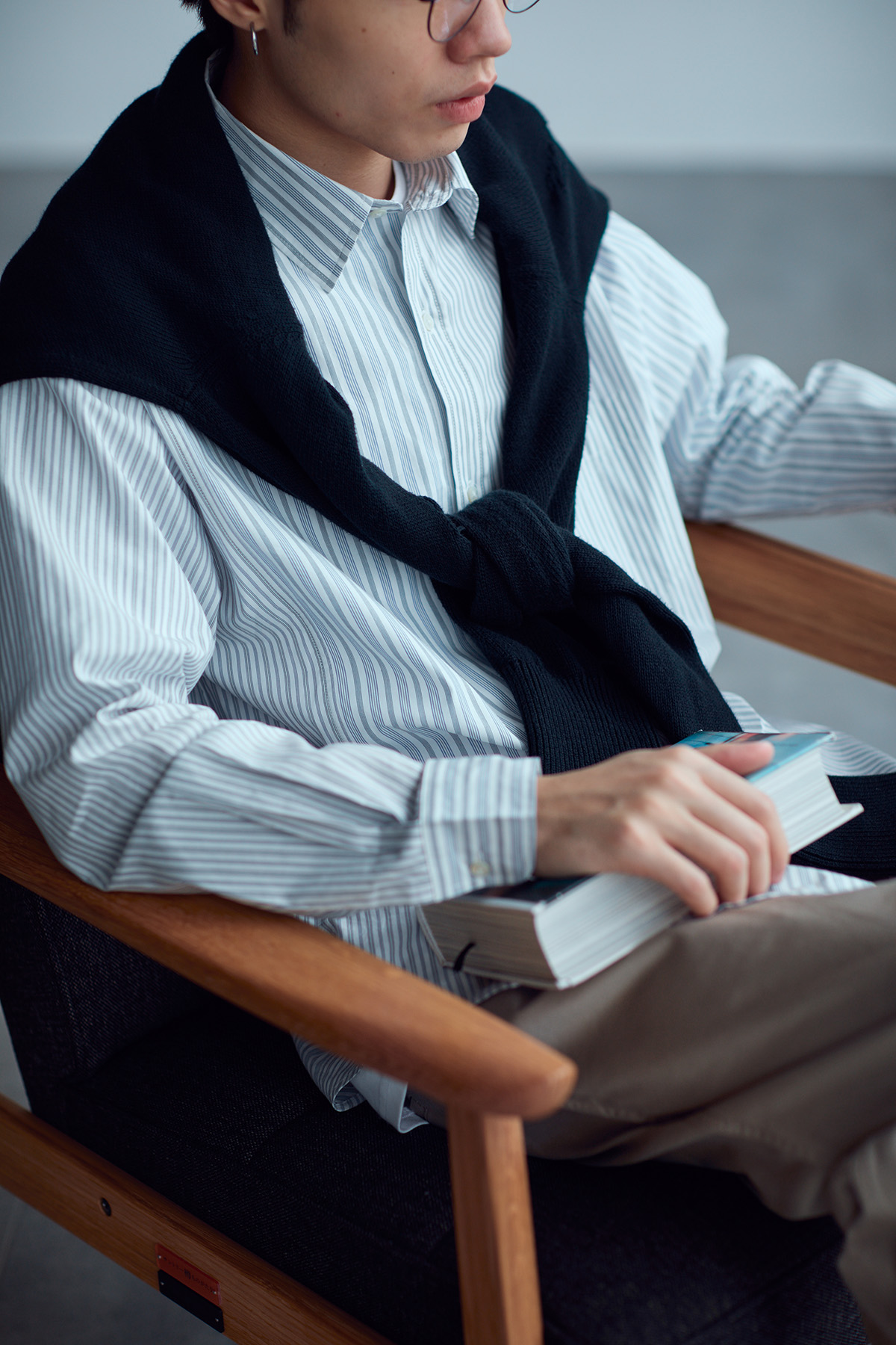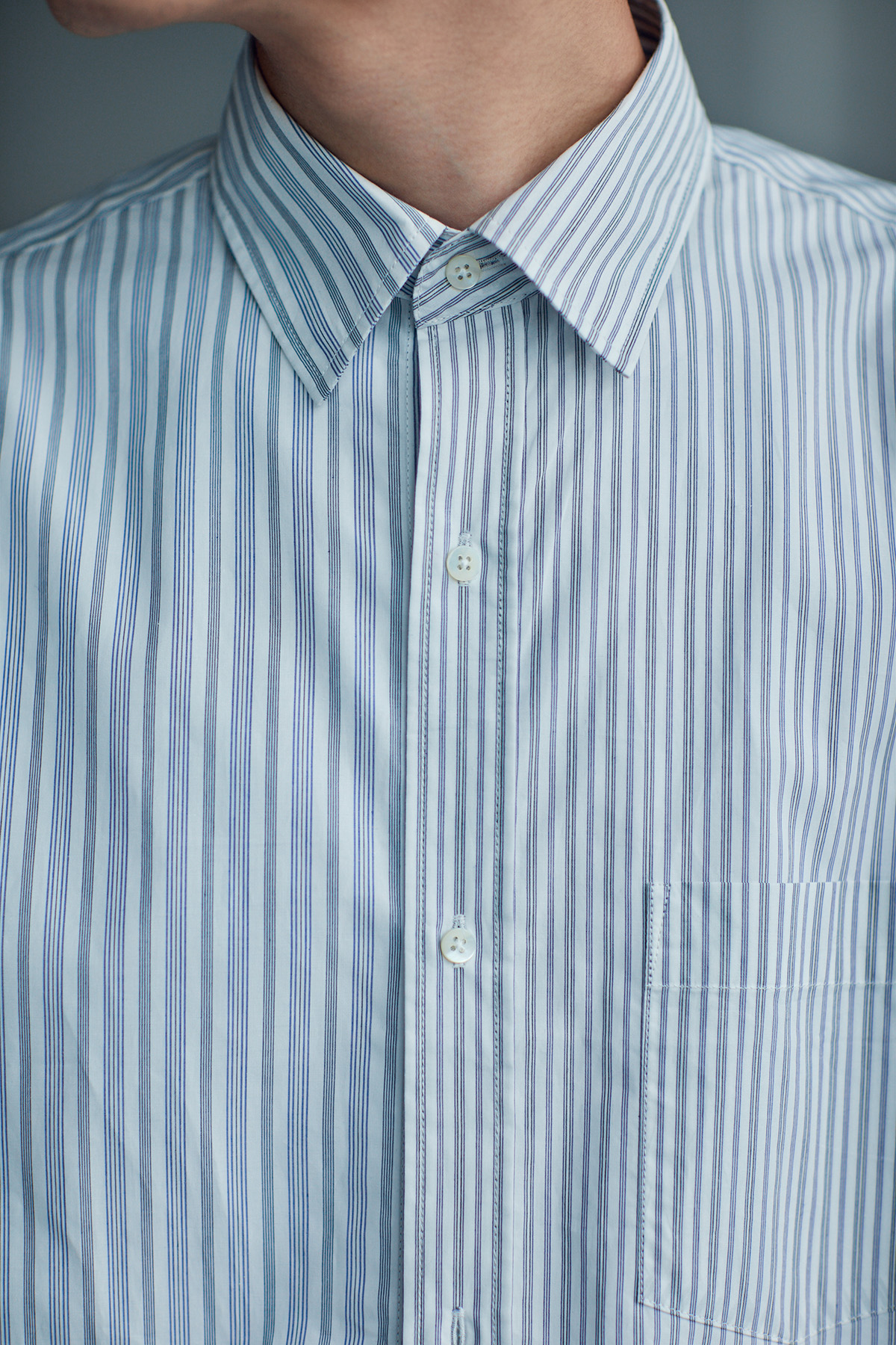 HUMANIMAL 20AW] Japan made in long suede cotton splicing pocket striped shirt