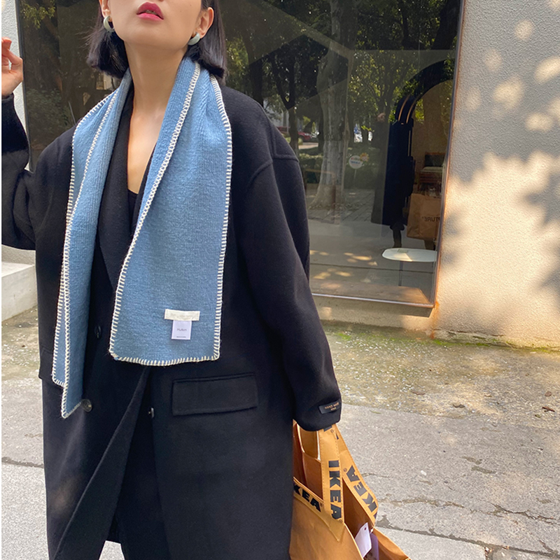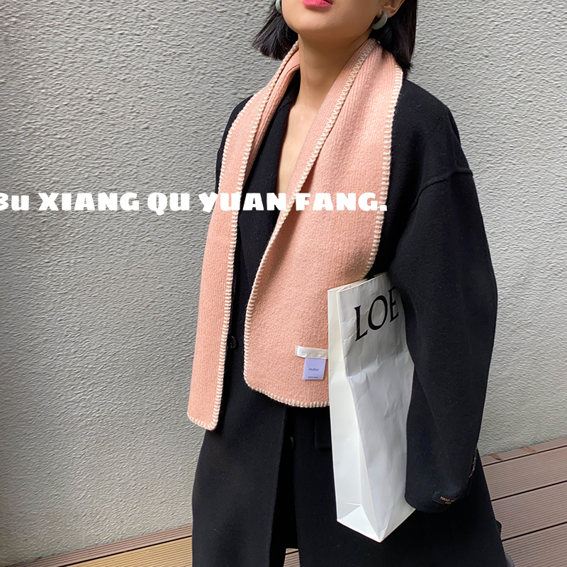 Day Faculty Sewn Edge Retro Pure Color 100 Lap Little Scarves short towels Thickened Student Warm Scarf Korean version of male and female winter knit-Taobao