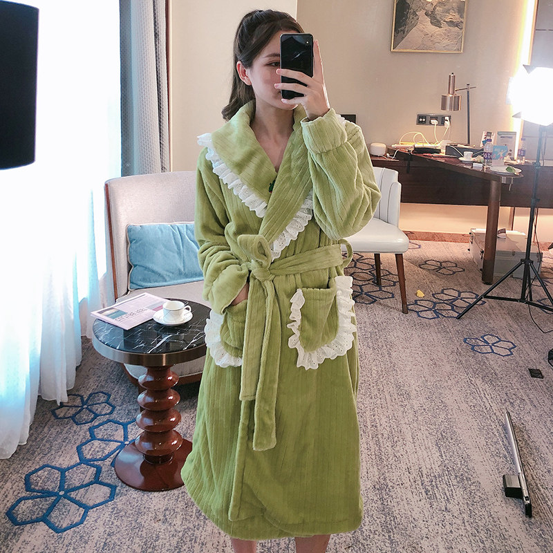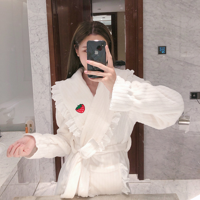 New strawberry nightgown women's winter long version coral fleece bathrobe bathrobe women's long version thickened flannel home service