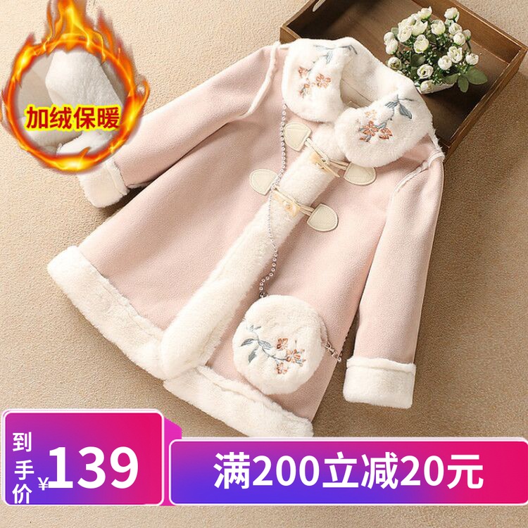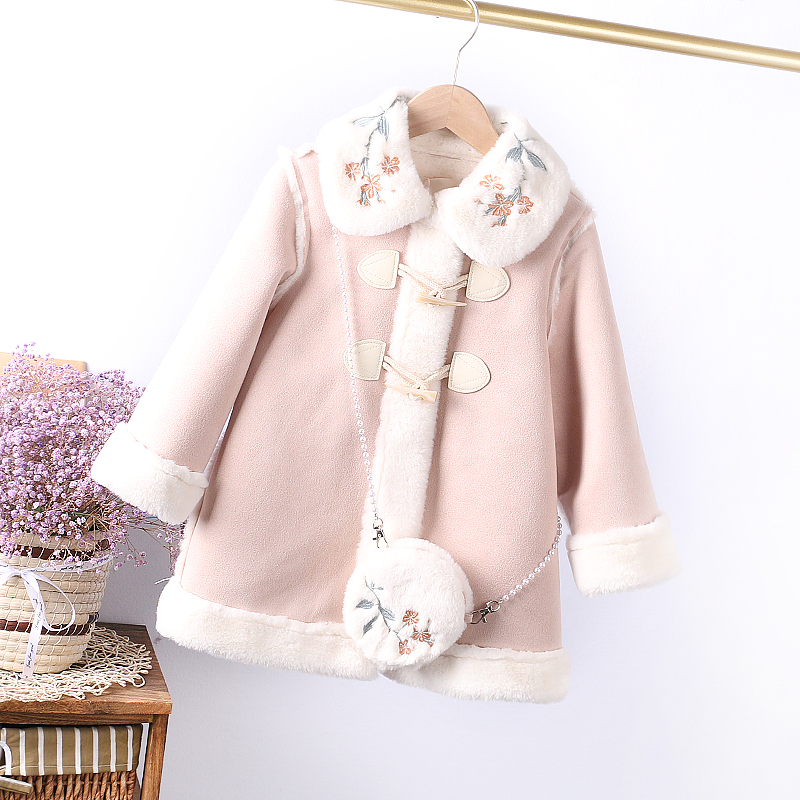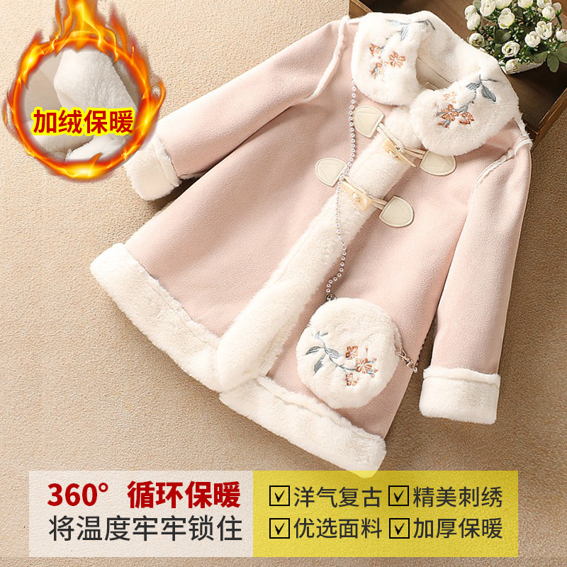 Girl Jacket Autumn Winter Style Big Boy Dress Foreign Pie Plus Suede Fur Integrated Suede Lamb Hair Thickening of the Sub-coat