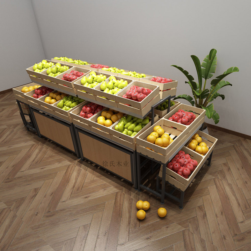 Fruit shelf fresh display rack steel wood fruit and vegetable rack supermarket new vegetable display rack detachable multi-layer 29
