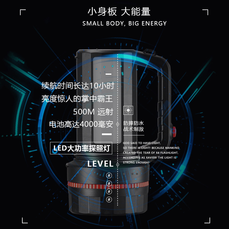 Long-term flashlight strong light emergency lighting outdoor ultra-bright charging long-range high-power multi-function searchlight with side light