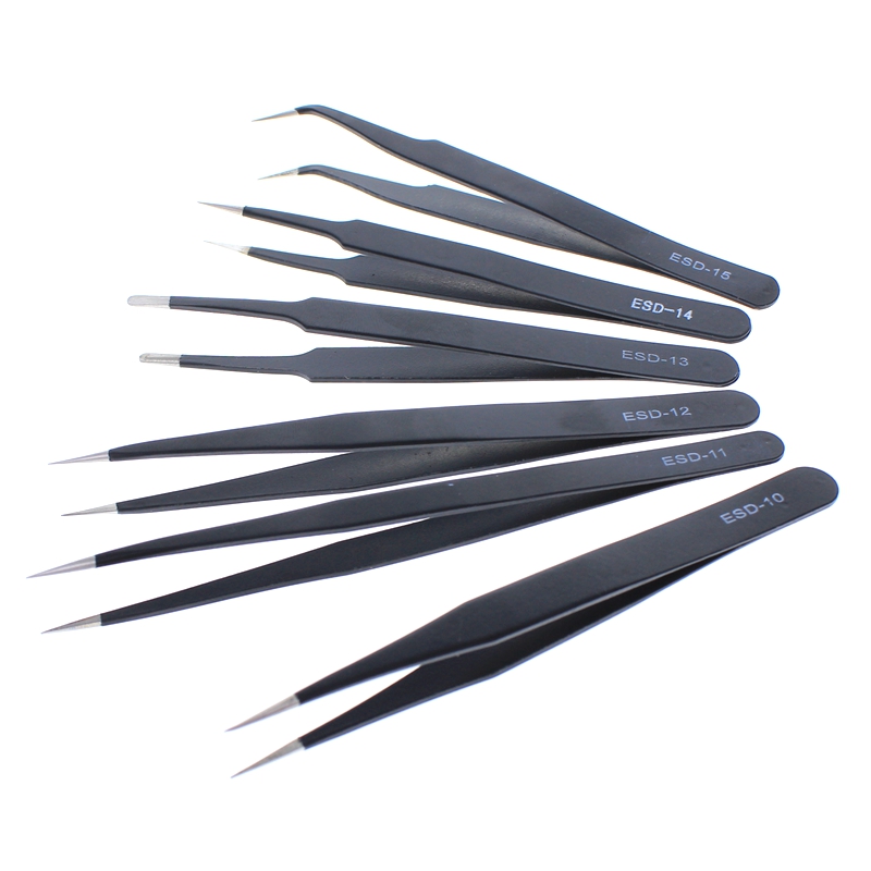 Stainless steel tweezers elbow fine tip anti-static small tweezers bird's nest hair picking acne clip repair tool set