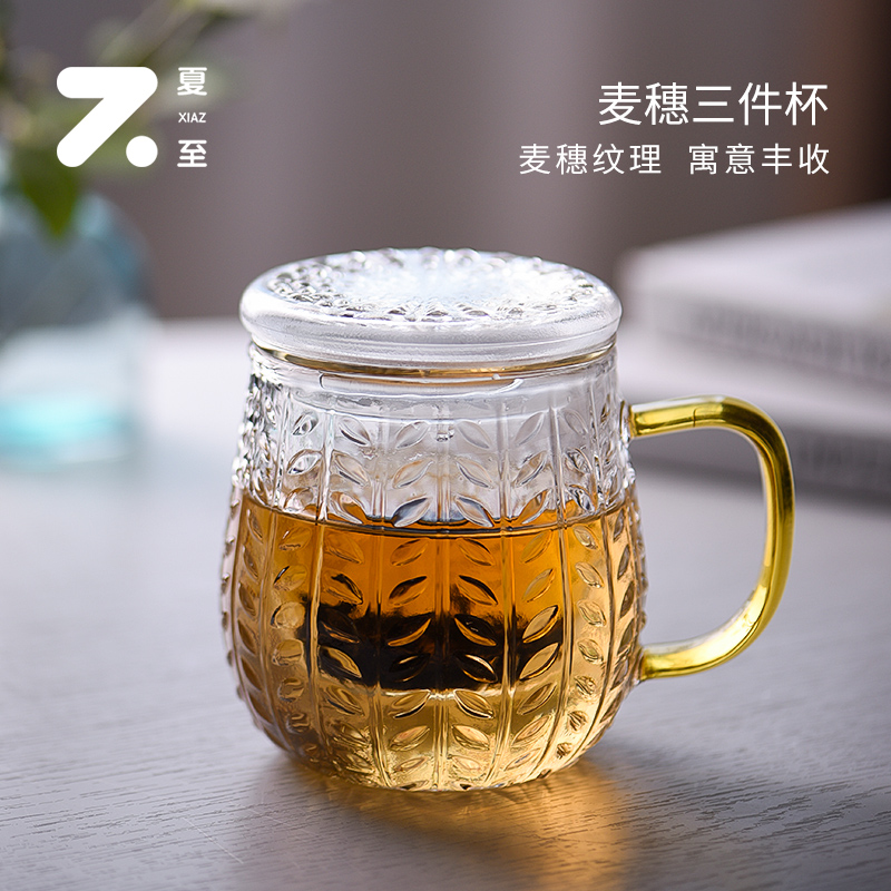 Ice crystal three cups-Bamboo cover 400ML ice crystal three cups-glass cover 400ML appliquing ice crystal three cups-Bamboo cover with flower ice crystal three cups-glass cover orange to make three cups 350