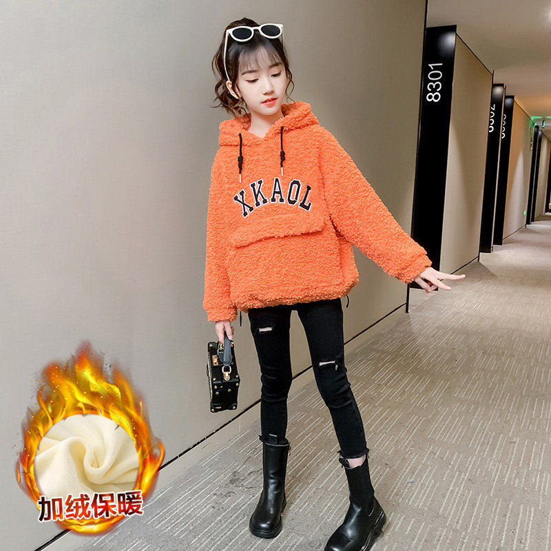 Girls plus jacket 2022 winter new childhood gas thickening sweater autumn lamb coat