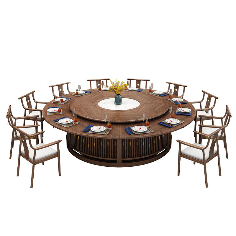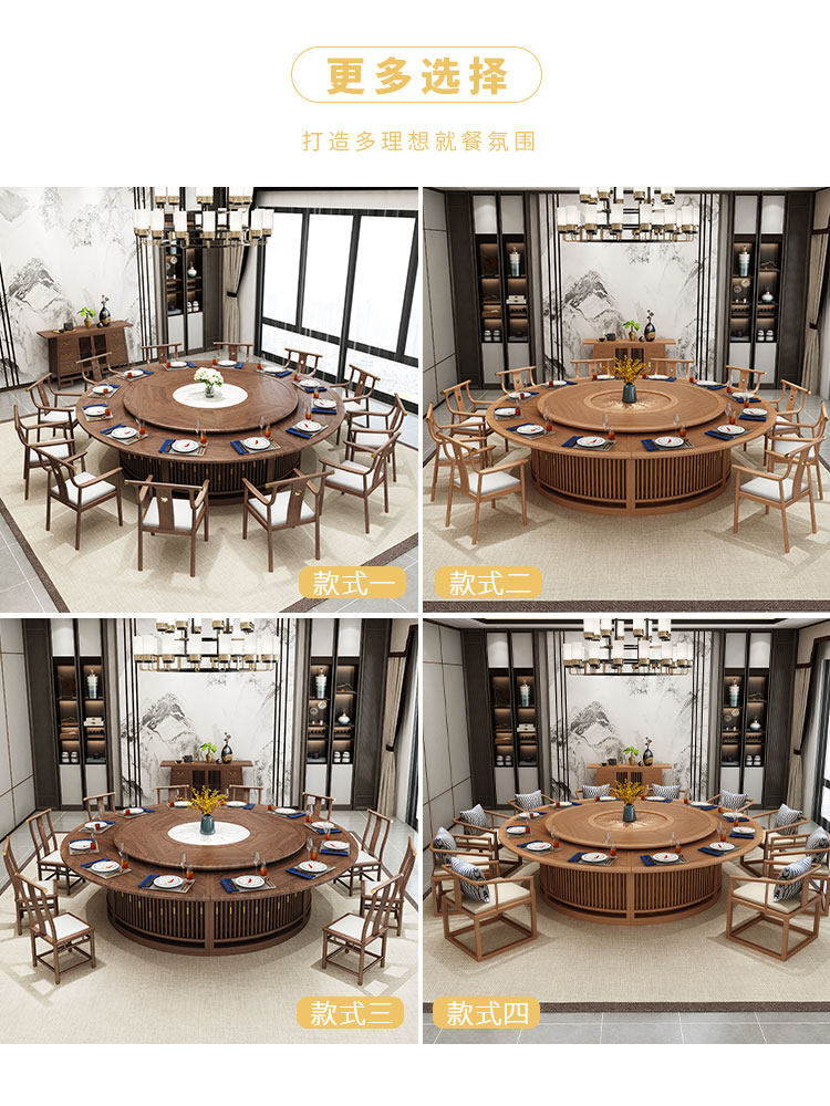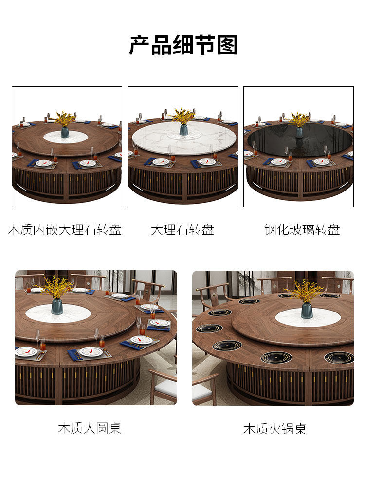 Hotel electric large round table New Chinese solid wood dining table with turntable 15 people 20 people Hotel table and chair combination hot pot table