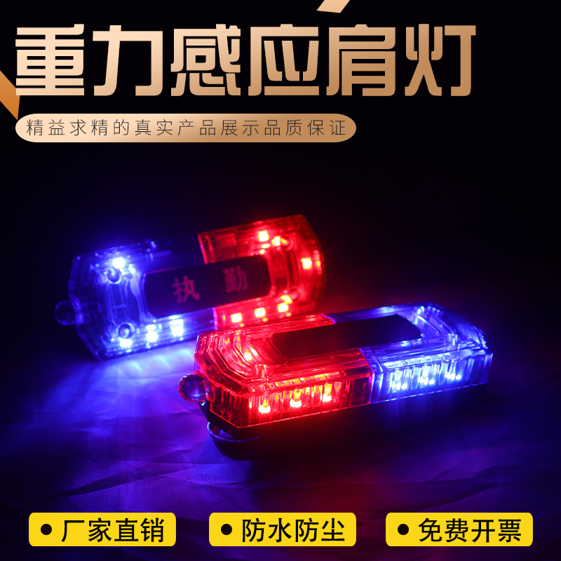Shoulder light multi-function duty security patrol riding gravity induction LED charging shoulder flash red and blue shoulder clip flash light
