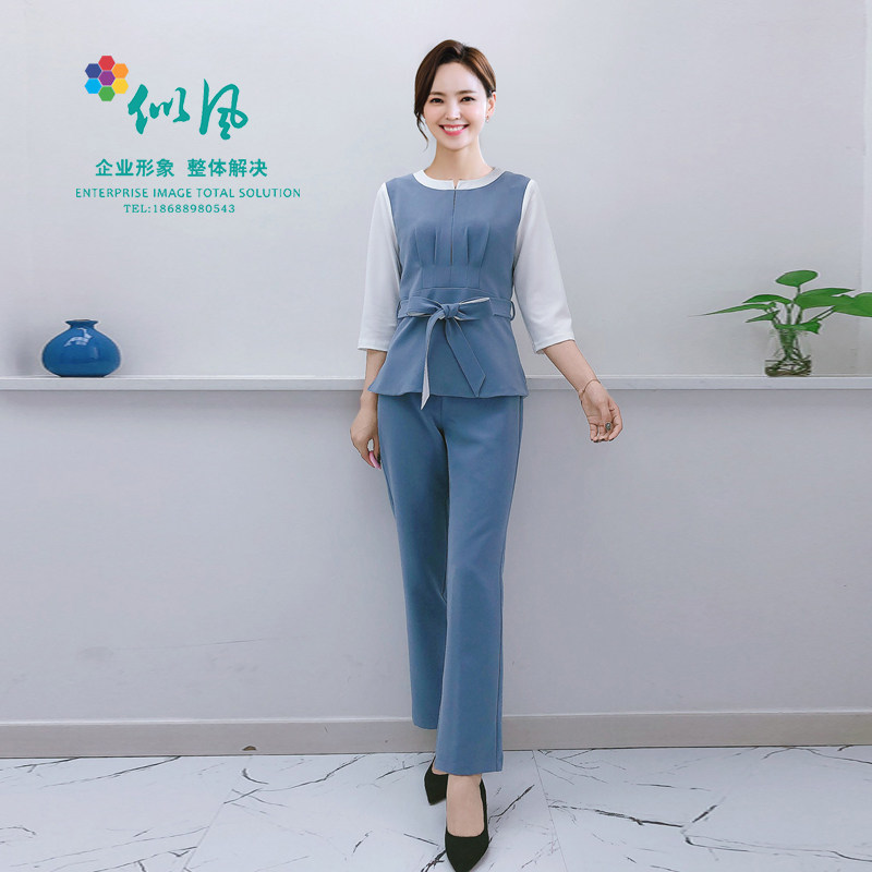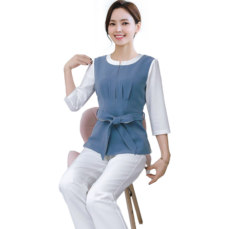 2022 Spring Beautician workwear women's meme skin management Attendant Foot Bath Technician Short Sleeve Suit