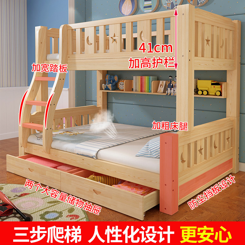 Upper Bunk Bed Low Bed Children Two Floors Multifunctional Full Solid Wood Primary And Secondary Bed Adults Up And Down Laying Wood Bed Double Layer