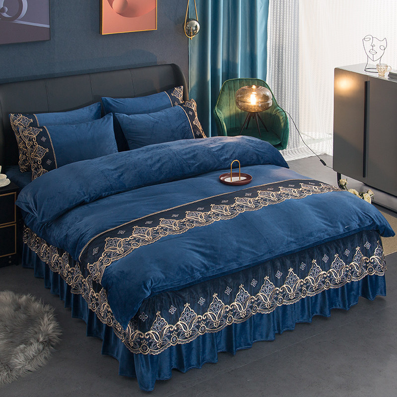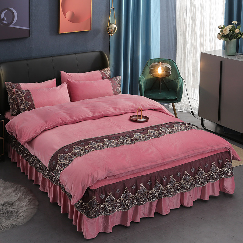 Winter warm and thick coral fleece bed skirt bed four-piece crystal fleece milk fleece quilt cover bedspread kit