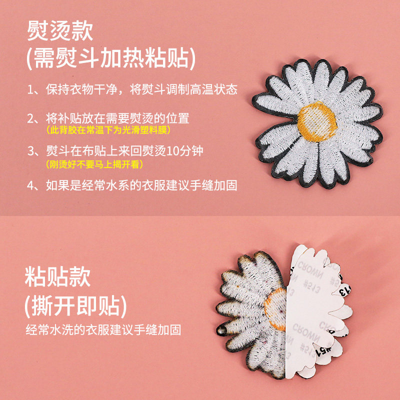 Small Daisy patch paste hole clothing paste self-adhesive non-trace embroidery patch hole decorative clothing paste embroidery hand sewn cloth paste
