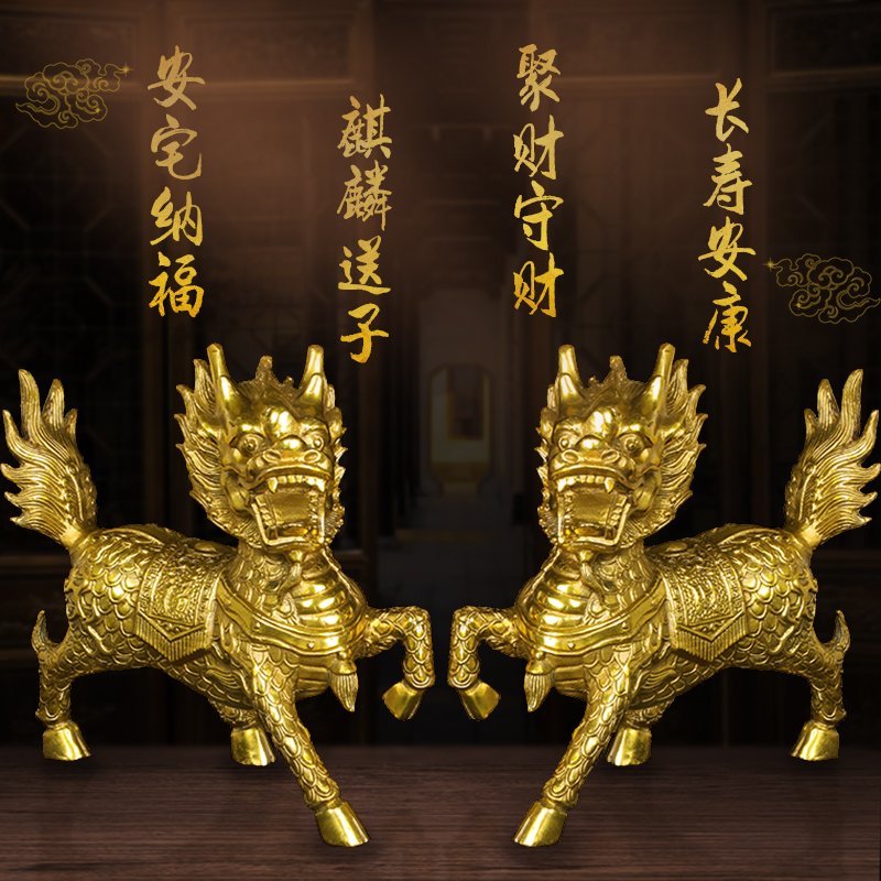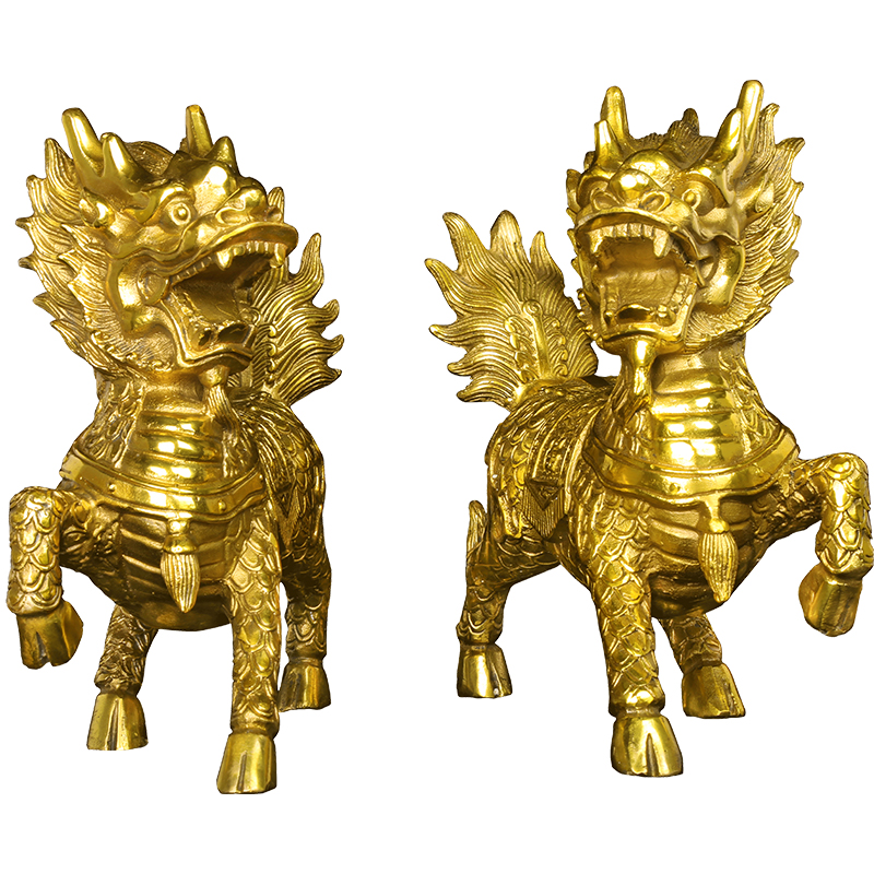 Blessing bronze unicorn (male) praying bronze unicorn (female) large praying copper unicorn pair