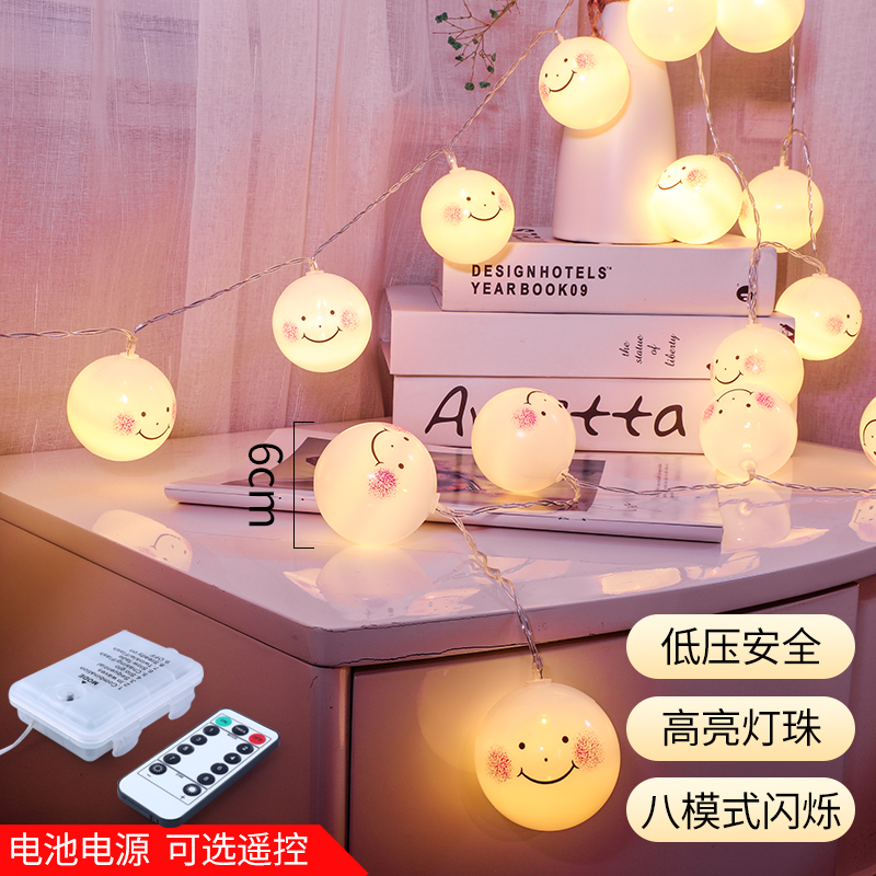 Smiley Face Small Colored Lights Flashing Lights Strings Full of Star Stars Nets Red Romance Ins Room Decoration Bedrooms Placement Creativity