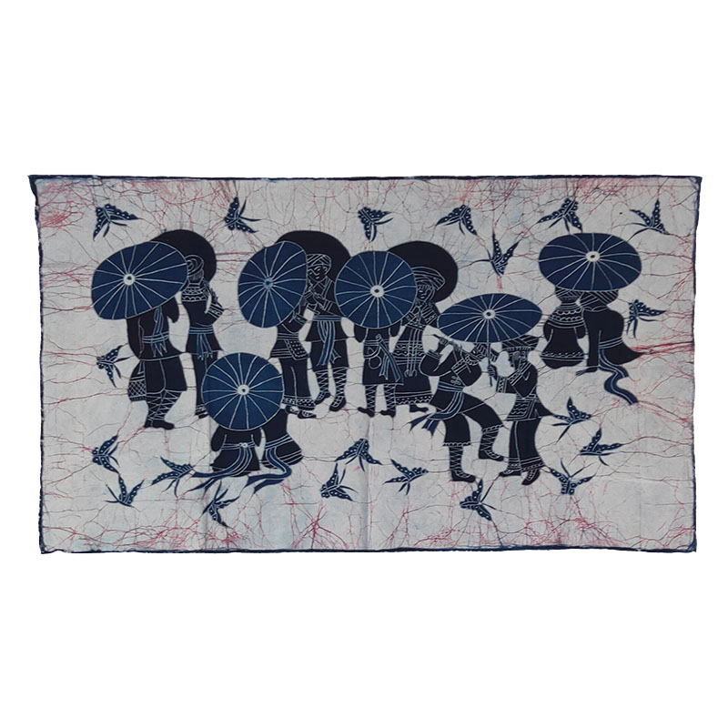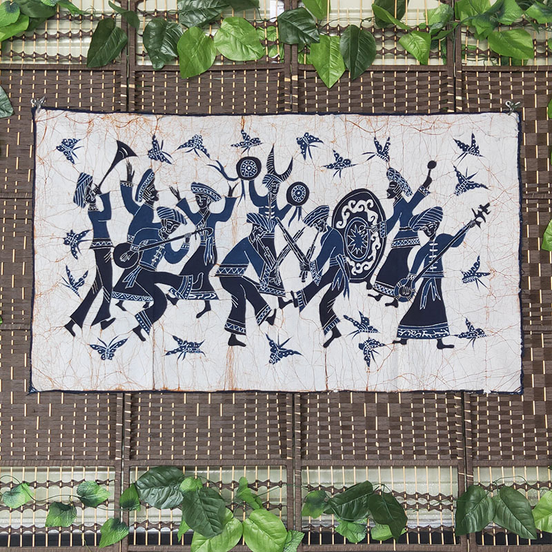 National characteristics Chinese sofa background cloth handmade Miao batik painting wall decoration home mural retro hanging curtain