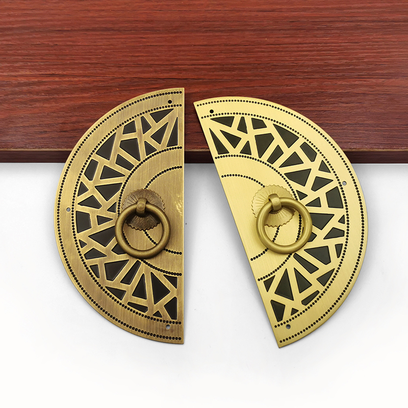 Chinese imitation antique pure copper brass pull handle cabinet integral cabinet shoes cabinet wardrobe door retro-carved round handle button wooden door