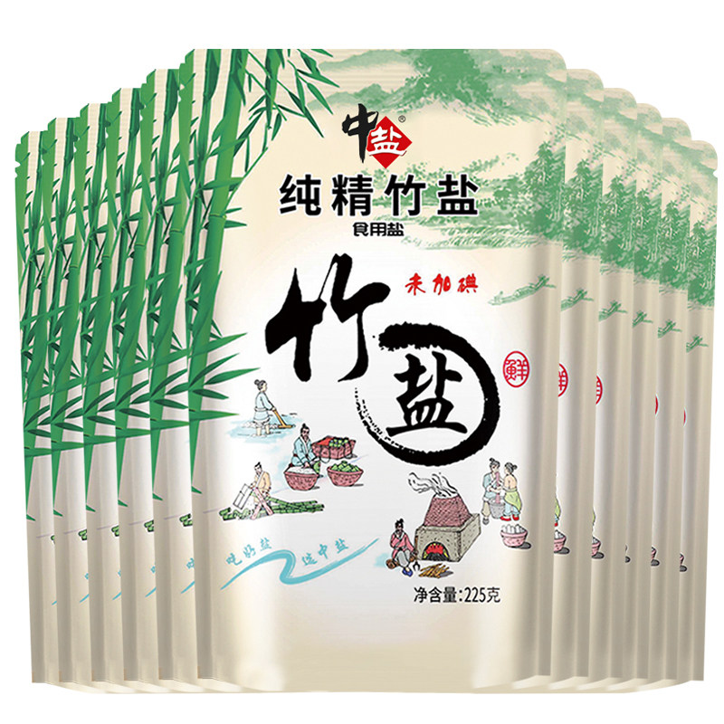 Medium salt not added with iodine bamboo salt 12 packets of bamboo salt Domestic edible salt no anti-binding agent without iodine salt cooked salt