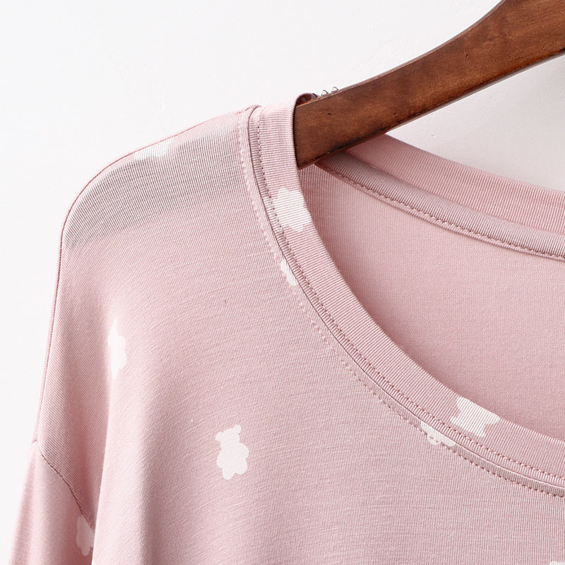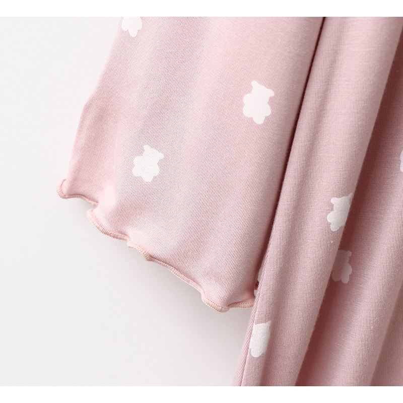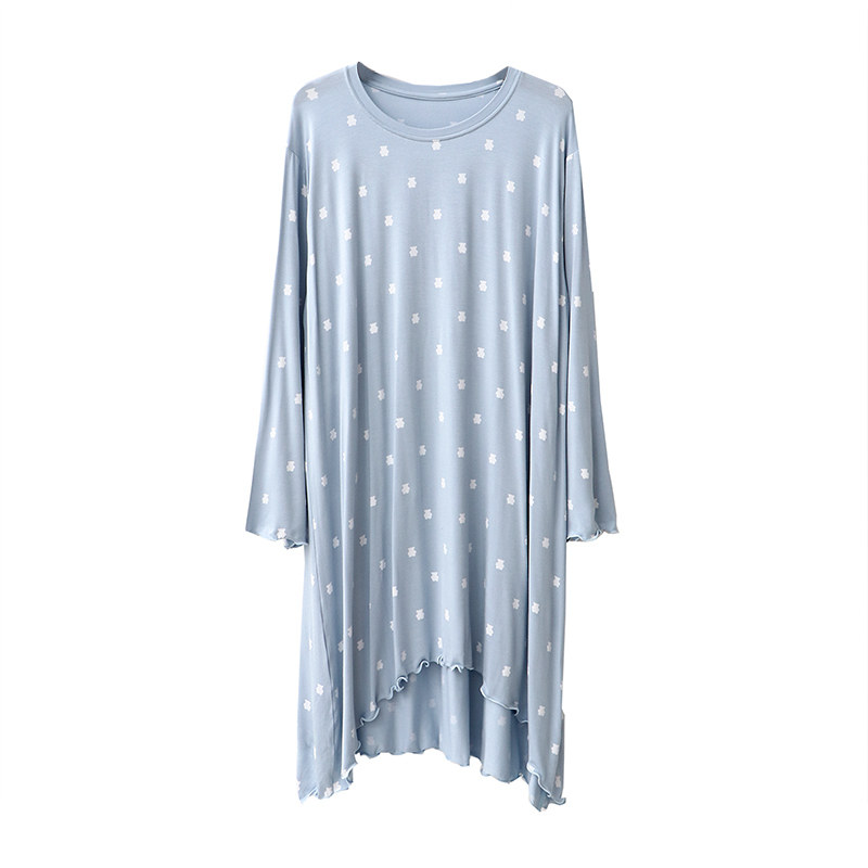 Sleeping Dress Woman Autumn Mordale Long Sleeve Round Collar Midlength Skirt Small Bear Printed Home Skirt Minimis Spring Autumn Pyjamas