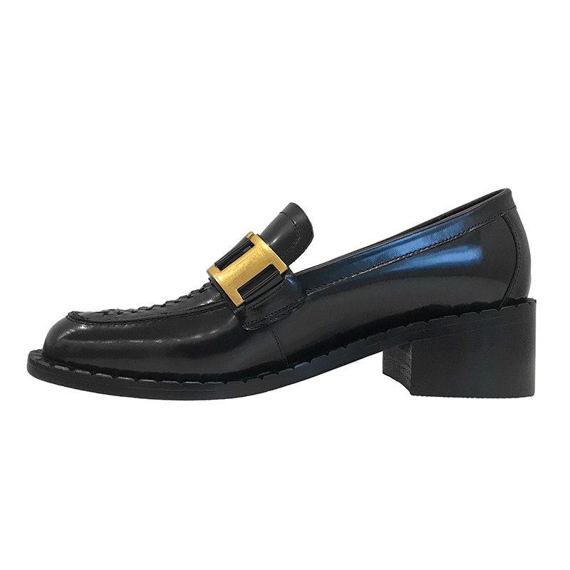 Loafers 2022 new shoes women's patent leather loafers slip-on single shoes British style metal medium heel small leather shoes