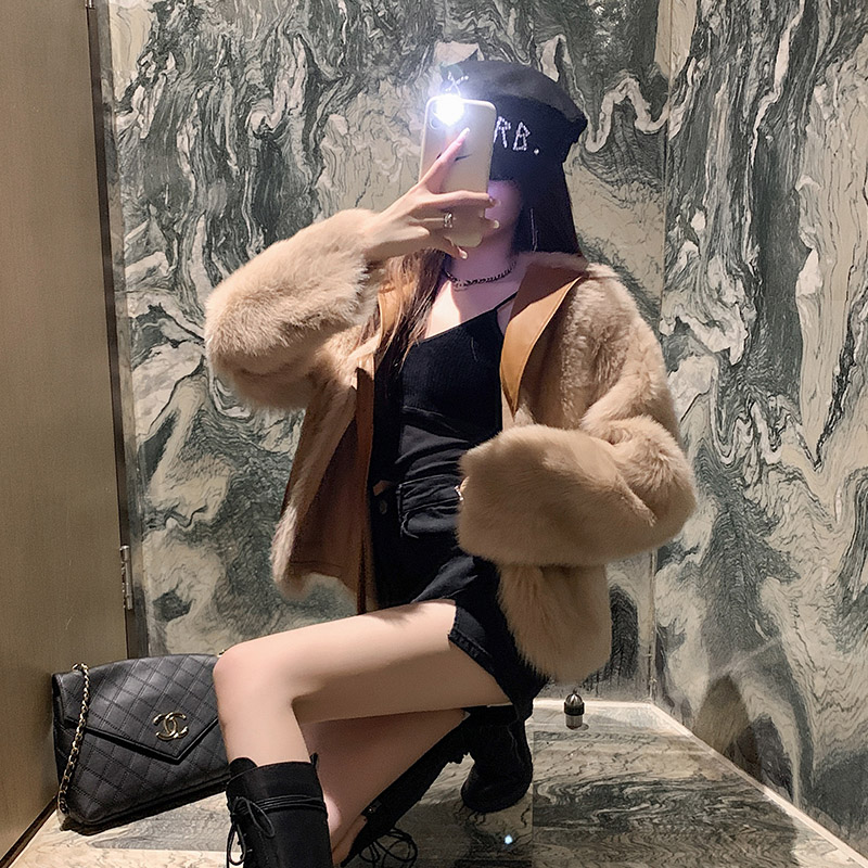 Spain imports Tuscany fur female lamb short locomotive jacket fur coat girl young