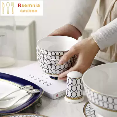 Rsemnia dish set Household 6-person high-end bone China tableware Nordic style simple plates, bowls and chopsticks creative
