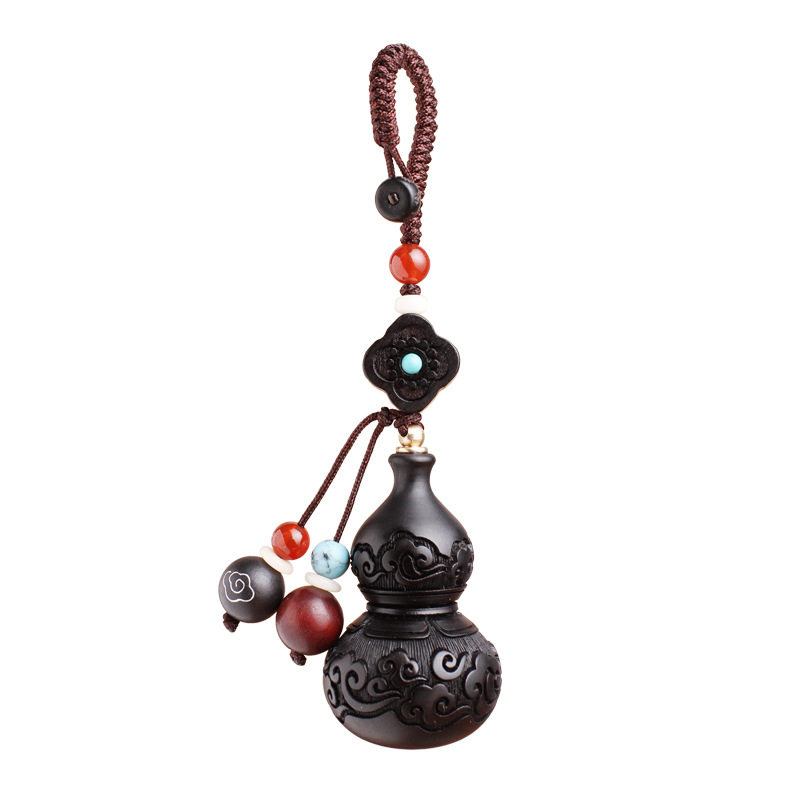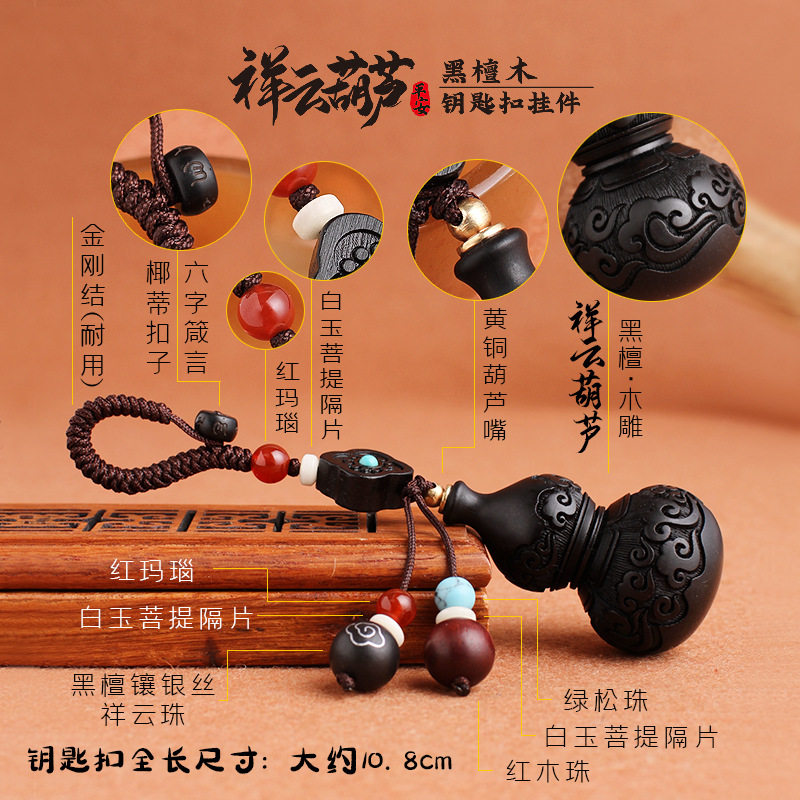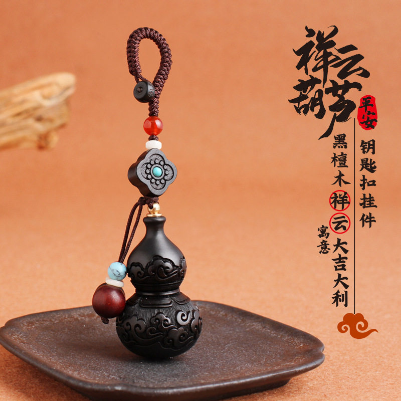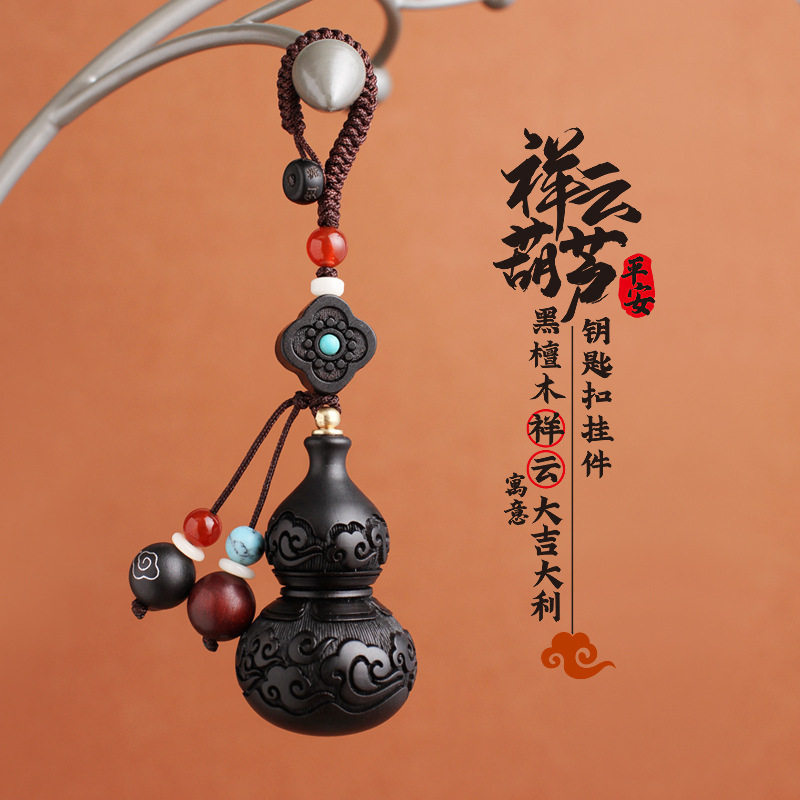 Black sandalwood Lucky Cloud Gourd Car Key Pendants Handmade Personality Men's Key Buttons Pendant Girls Bag Hanging Accessories